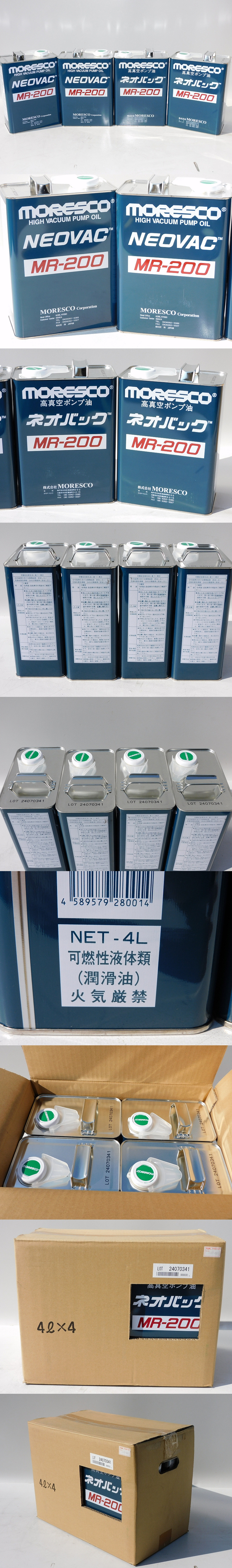 | 【メーカー/商品名】 MORESCO NEOVAC ネオバック 高真空ポンプ油 MR-200 4L×4本 仕様熱安定度(170℃×24h)合格 動粘度(mm2/s)71.0(40℃) 蒸気圧(Pa[Torr])1.3×10-3以下(1×10-5) 用途全般に適合 TGK品番423-64-57-22 容量(L)4 適合範囲ポンプ 引火点(℃)250以上(COC) 流動点(℃)-17.5 アズワン品番1-685-02 危険物の類別指定可燃物 危険物の品名可燃性液体類 危険物の数量4kg ISO粘度グレード68 密度(g/cm3 at15℃)0.88 色(ASTM)L0.5 全酸価(mgKOH/g)0.00 【商品の状態】 新品同様 未使用 まだ開けておらず 保管品 ※未使用品やほとんど使っておらず、で出品する物は新品に極力近い物であり、 動作はこちらで未チェックでも動作保証になります。故障してましたら返品お受けします(到着後2週間内)。 まだ開けておらず新品同様です。未使用品です。 【注意事項】 ~未使用品の場合~ ・未使用品は年式は古くても機能的には新品同様(動作保証)です。 ・物によっては10年以上前の物もある時があります。年式が気になる場合は落札前にネットで同型を調べるなりしてください。 ・箱や説明書などの劣化、濡れた跡があったりシミ汚れ等が発生している場合がございます。伝票のはがし跡がある時があります。中身重視でお願いします。 ・気付いた事は説明文に必ず載せますが、説明文に無くても写真でハッキリ確認できる場合は、お伝えしているのと同じですので恐縮ですがクレーム対象外です。 ・ノークレーム、ノーリターンでお願いいたします。 神経質な方は入札をご遠慮ください! 使用に支障が無いような後ろや裏面の汚れが気になる方は入札をご遠慮ください。 またシビアな新規の方も入札をご遠慮ください。 【送料】 送料無料(恐縮ですが沖縄や離島は発送不可です) ・送料は当方が負担いたします。 ・北海道はプラス料金(+500円)がかかります。 ・沖縄や離島は基本的には不可ですが、宅急便サイズはヤマトかゆうパックで出せる時もございます。その場合は送料着払いになります。別料金が発生いたしますので注意願います。 ・超小物サイズは定形外郵便、宅急便サイズは佐川急便、大型家電はアートセッティングデリバリー(ヤマトの旧らくらく家財便)になります。 ・集荷は毎日13時頃に佐川急便が来ます。それまでに入金確認ができればその日に、13時以降は翌日になります。日曜、祝日は定休日になります。 【領収書】 領収書の発行可能(取引ナビの画面から印刷可能) ・領収書の発行可能です。当方はストアですので落札者様側の取引ナビの画面からすぐに印刷できます。 ・取引ナビに「領収書を発行する」というボタンがありますのでそちらからダウンロード、印刷してください。 ・領収書のデータは、取引期間中であれば[領収書を発行する]ボタンから何度でも表示できます。ただし、2回目以降の表示では(再発行)と表記され、発行日もその都度更新されます。 ・あて名は、空白で固定されています。 ・落札から120日を過ぎると取引ナビを利用できなくなるため、領収書の発行もできません。 ・手書きの領収書も対応いたします。 ※領収書の詳しい内容はこちら からご覧下さい。 【当方へのお支払い(※分割払い可)】 落札代金+消費税 ・領収書の発行もご依頼があれば発行致します。代引きは不可です。 【分割払いの場合】 当方は「ストア」ですのでの分割払いにも対応しております ・分割払いは!かんたん決済のクレジットカードでの支払いを選択した場合のみ可能です。 ・お支払回数は3回、6回、10回、15回、20回から選べます。 ※注意※ 個人出品の方への支払いは一括しかございません。分割は出品者が「ストア」の場合のみ可能です。 カード会社によっては分割払いに対応していない会社もあるようです。事前に確認しておいてください。 当方と直接分割のやり取りはできません。またお支払方法の決定後に変更はできません。 その他、詳細を当方へ聞かれてもわかりかねますので、詳しくは下記のページでご確認ください。 ※分割払いの詳細は詳細1、詳細2 からご確認下さい。 【ご来店での引取の場合】 ご来店での引取可能です ・引き取り場所はストア情報に記載している住所になります。 ・日曜、祝日以外の9時半から17時の間でお願いします。遅くなる場合は事前にお伝え下されば合わせるようにはします。 ・パワーゲート車がありますので重たい物も積込みは可能です。フォークリフトはありません。 ・当日現金払いでも大丈夫です。 ・送料無料で出品している物は送料分を引かせていただきます。 【連絡事項】 (注)恐縮ですが、到着して2週間経ってからのクレーム等の対応は一切お受けできません 2週間経つと故障しても、破損していても一切対応できません。その間どのような環境や扱い方をしたか分からないですし、こちらとしても完全に区切りを付けないと終わらないからです。 到着後、早急に動作確認や状態のチェックをお願いいたします。 ※何かございましたら評価を入れる前に連絡ください。対応はさせて頂きますので。