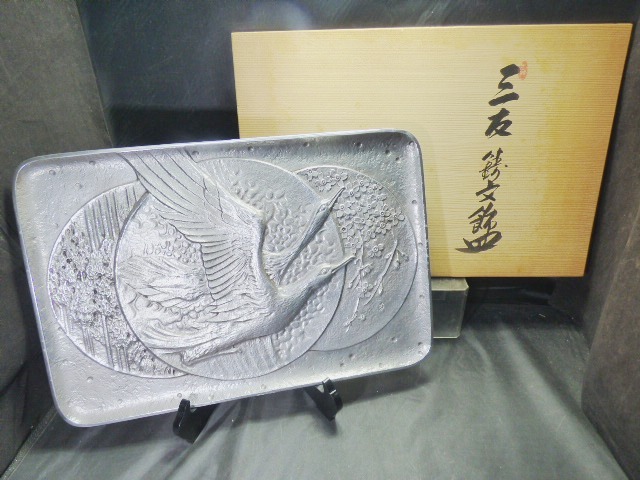 こちらは100サイズでの発送を予定しております。 送料など詳細は「梱包・発送について」欄に記載しておりますので、そちらをご確認ください。 外寸(約):44.4×29.6×厚み2.8cm ※金属製ですが、詳細な金属の種類は不明です。 共箱付きです。 詳細は写真でご確認ください。 写真のものがすべてです(飾り皿以外のものはイメージのため、付属しません) こちらは中古品です。 共箱にはシミがあります。 その他傷や汚れなど、写真をご確認の上での入札をお願いいたします。 詳細複数写真 ← Googleフォト リンク出来る場合写真はGoogleフォト 動画はYouTubeにリンクしています ※梱包について※ 緩衝材を使用した梱包をご希望の場合は60~100サイズまで100円、120~170サイズまで300円を頂戴いたします。 落札時にご希望の旨を必ずご連絡下さい。ご連絡がない場合は簡易梱包で発送致します。 簡易梱包の場合、追加費用はかかりません。 ※簡易梱包は緩衝材等を使用しませんのでご了承下さい。 素人なりに配慮した梱包を心掛けております。 しかしながら配送中にどうしても欠け、ひび、割れ等発生する場合がございますが免責とさせて頂き、返金等は致しかねますのでご了承・ご了解の上ご入札下さい。 詳しくは梱包・発送についてをご確認下さい。 商品ランク(ランクの記載のない商品もございます) A:新品・未使用品。 B:未使用に近い状態です。 C:中古品ですが目立った傷や汚れありません。 D:中古品の為、やや傷や汚があります。 E:中古品の為、傷や汚れ等の使用感が多数あります。 F:全体的に状態が悪い。 ☆個人での主観評価となりますので参考程度にしてください。 | ||||||||||||||||||||||||||||||||||||||||||||||||||||||||