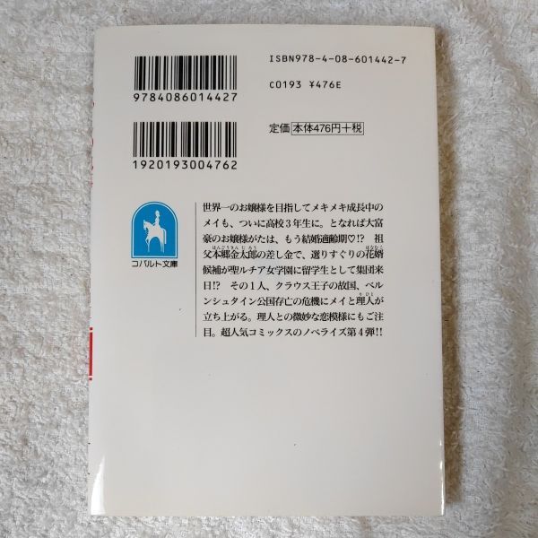 世界一のお嬢様を目指してメキメキ成長中のメイも、ついに高校3年生に。となれば大富豪のお嬢様がたは、もう結婚適齢期!?祖父本郷金太郎の差し金で、選りすぐりの花婿候補が聖ルチア女学園に留学生として集団来日!?その1人、クラウス王子の故国、ベルンシュタイン公国存亡の危機にメイと理人が立ち上がる。理人との微妙な恋模様にもご注目。超人気コミックスのノベライズ第4弾。