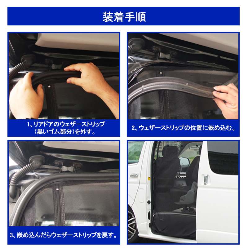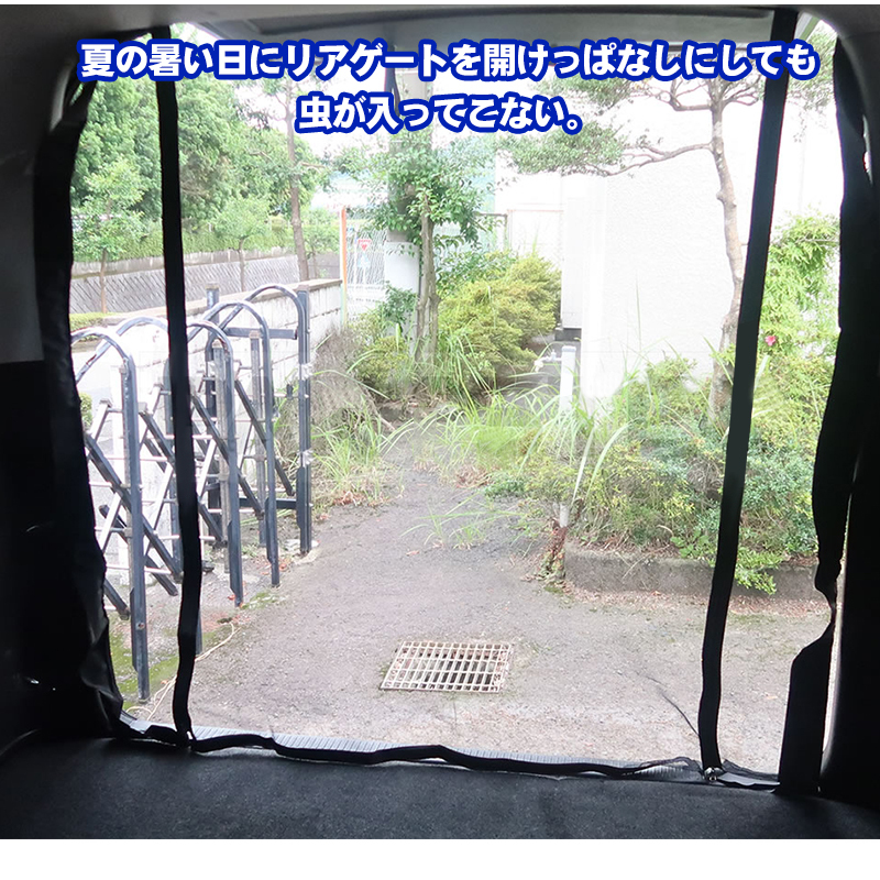 | 商品説明 | 車内への虫の侵入を防ぐ ウェザーストリップに嵌め込んで取り付けるだけの簡単装着! 夏の暑い日にリアゲートを開けっぱなしにしても虫が入ってこない。 車の内外両方から開け閉めができるダブルファスナー仕様! 風通しを考えたデザインで、特製の網目状になって、虫の侵入を防止し、夏でも風通しを快適に、省エネ効果も期待できます。 装着手順: