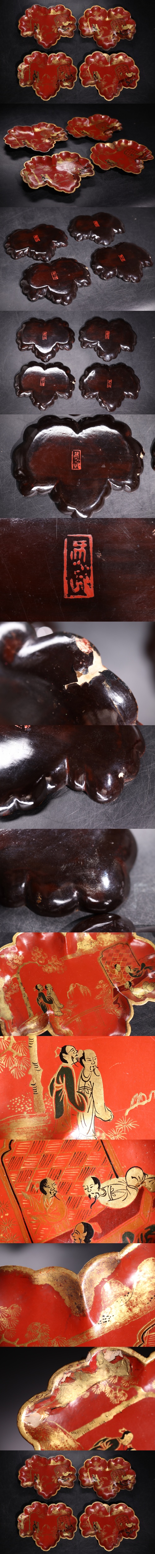 | 時代 在銘 漆器 人物文 金蒔絵 金縁 茶盆 四客 / 漆塗 盆 煎茶道具 検索: 輪島塗 中国 山中漆器 .G2561 |