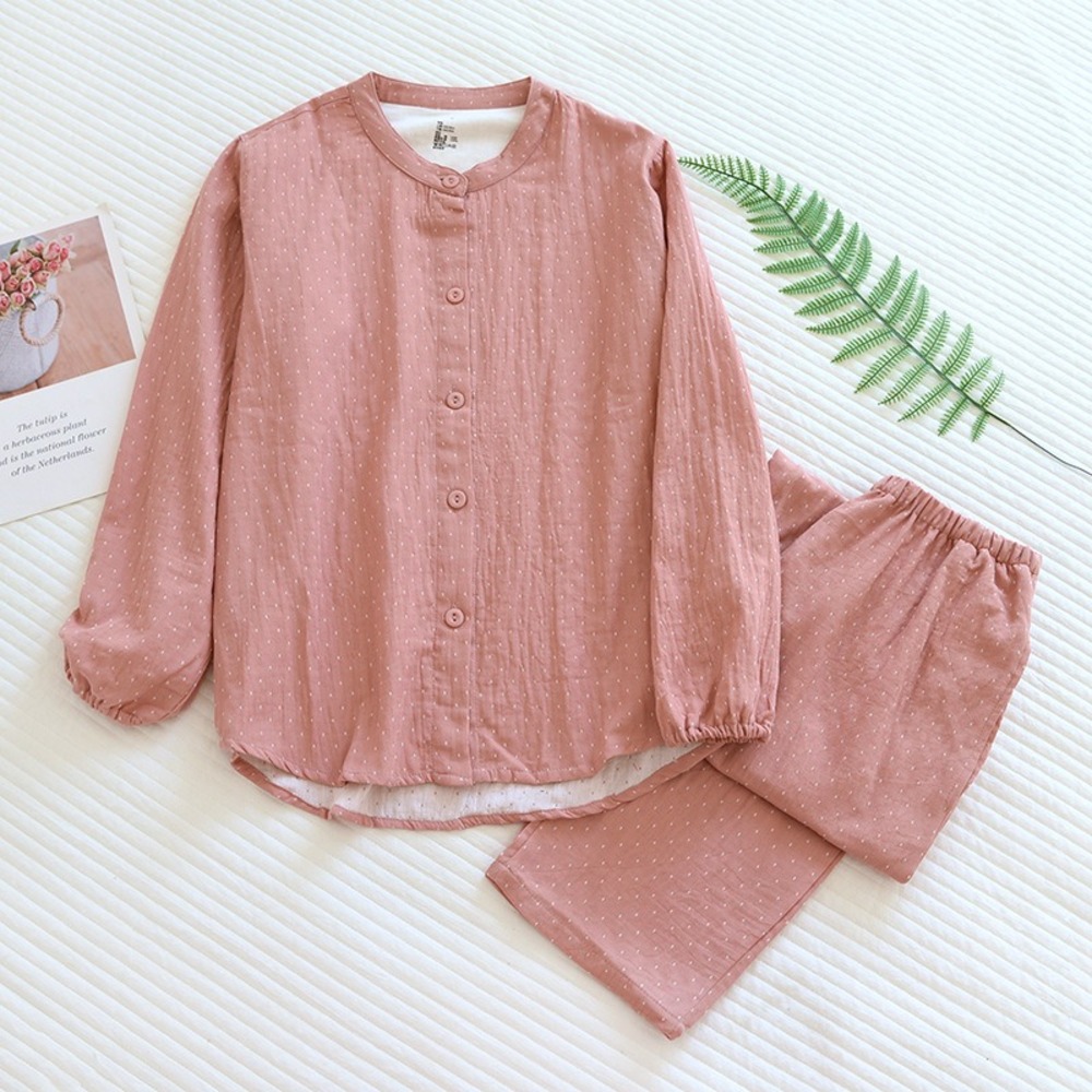 | 商品説明 | ・・【お家の中でも可愛く快適に!】 ・お気に入りのアイテムで、心地よくリラックス♪レディース用「ルームウェア 上下セット」。 ・【ロングシーズン使えて万能】 ・肌寒い日や季節の変わり目に。冷房による冷え対策にもぴったりな長袖タイプ。 ・【ふんわり柔らかなコットンガーゼ】 ・肌当たりの優しい、2重ガーゼ生地を使用。チクチク感がなくデリケート肌でも安心。 ・【汗ばむ季節もストレスフリー】 ・吸湿性と通気性に優れており、汗をかいてもムレにくいのが嬉しい! ・【フロントボタンでサッと着脱】 ・フロントボタン付きの前開きタイプ。詰まり過ぎないネックラインで、心地よい睡眠をサポート。 ・【袖ゴム入りで動きを妨げない】 ・袖口にはギャザーゴムをプラス。手元すっきり、腕まくりもラクラク。 ・【ストレスなく履けるロングパンツ】 ・締めつけ感のないウエストゴム仕様。スッと足を通せて、着替えもラクチン。左右ポケット付き。 ・【ナチュラルなドットデザイン】 ・温かみのあるカラーに、シンプルなドット柄♪年代問わず着こなしやすく、気分もアップ。 |