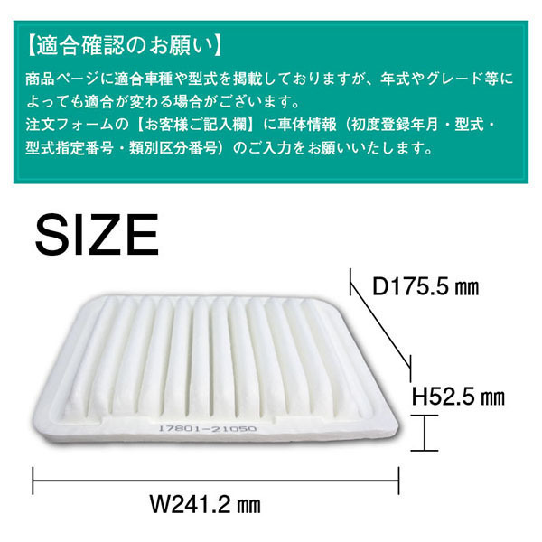 | 【商品詳細】 新品 汎用品 高品質 純正クオリティのエアフィルターです。 【参考純正品番】 17801-21050 1M00-23-603 17801-0D060 【適合車種一覧】 ◆トヨタ◆ アベンシス/ZRT272W アリオン/NZT260 ZRT260 ZRT265 ZRT261 イスト/NCP110 NCP115 ZSP110 ウィッシュ/ZGE20W ZGE20G ZGE25G ZGE25W ZGE21G ZGE22W ヴィッツ/NCP95 NSP130 NCP131 ヴォクシー/ZRR70G ZRR70W ZRR75G ZRR75W ZRR80W ZRR80G ZRR85W ZRR85G エスクァイア/ZRR80G ZRR85G オーリス/NRE185H NZE151H NZE154H NZE181H NZE184H ZRE152H ZRE154H ZRE186H カローラアクシオ/NZE141 NZE144 NZE161 NZE164 NRE161 ZRE142 ZRE144 カローラフィールダー/NZE141G ZRE144G NZE161G NZE164G NRE161G ZRE142G ZRE144G ZRE162G カローラルミオン/NZE151N ZRE152N ZRE154N サクシード/NCP160V NCP165V シエンタ/NSP170G NCP175G スペイド/NSP141 NCP145 ノア /ZRR70G ZRR70W ZRR75G ZRR75W ZRR80W ZRR80G ZRR85G ZRR85W ハリアー/ZSU60W ZSU65W プレミオ/NZT260 ZRT260 ZRT265 ZRT261 プロボックス/NCP160V NCP165V ベルタ/NCP96 ポルテ/NSP141 NCP145 ラクティス/NSP120 NSP122 NCP100 NCP105 NCP120 NCP122 NCP125 ◆マツダ◆ ファミリアバン/NCP160M NCP165M ◆スバル◆ トレジア/NSP120X NCP120X NCP125X ※上記車種にグレードや型式記載されている場合でも、年式・仕様等により適合しない場合が御座います。必ず実車に取付されている純正品番をご確認の上ご注文お願いします。 |