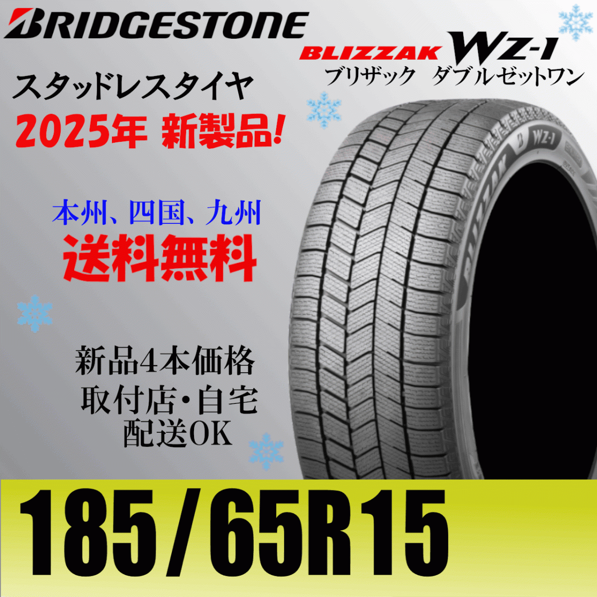 | タイヤ :ブリヂストン ブリザック Wz-1 ※スタッドレスタイヤです。 サイズ :185/65R15 88Q 状態 :新品、未使用品 本数 :4本 4本必要でしたら個数「1」で入札してください。 | ||