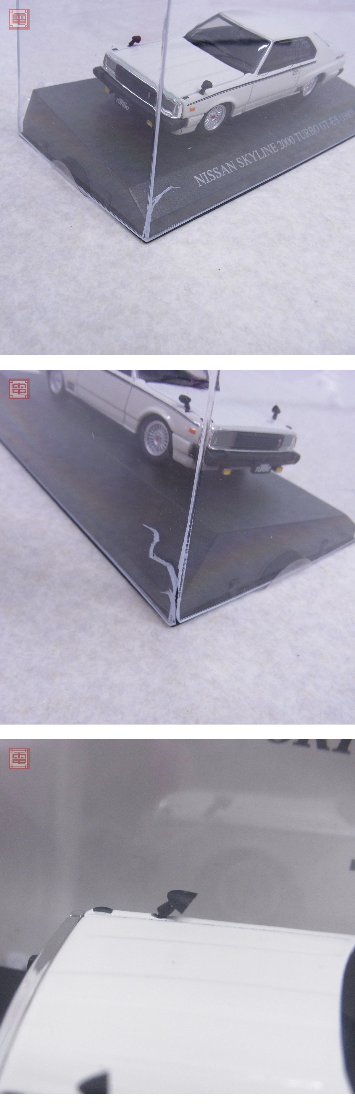 DISM 1/43 日産 スカイライン 2000 ターボ GT KHGC211 後期 RSワタナベホイール/後期 シルバー/後期 ホワイト 計3台set NISSAN SKYLINE ■外箱にスレ、キズ、折れがあります。 ■ケースにスレ、キズ、ヒビがあります。 ■ミラーに折れがあります。 ■付属物については簡易検品は行っておりますが詳細なチェックは行っておりませんので、万が一、欠品や余分なものが入っていたとしてもご了承ください。 ■ライトONは一台のみ動作確認できました。残り2台はスイッチONにしてもライトは付きませんでした。 ■台座に固定されているものは、外さずに行える範囲でのチェックを行っています。 ■写真のものが全てです。付属物の有無や状態については写真からご判断ください。 ■付属物については細かいチェックはしておりませんので、万が一、欠品があったり余計な物が入っていたとしてもご了承ください。 ■商品到着後、当店の保証期間中は、商品及び箱や取説、付属品などを1つでも廃棄や破損をしないようにお願い致します。廃棄や破損をした場合、商品に問題があった場合でも対応や返金などの対処ができなくなります。 ■商品によりますが、発売されてから10年以上経過している中古品である事をご理解頂いた上でご入札をお願い致します。なお、新品や美品、また特記事項がある場合は別途明記します。 | |||