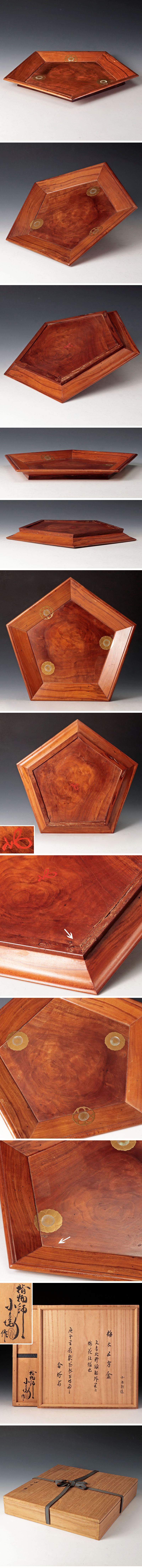 【古美味】指物師 一瀬小兵衛『官休庵(愈好斎)花押』梅木五方盆 茶道具 保証品 |