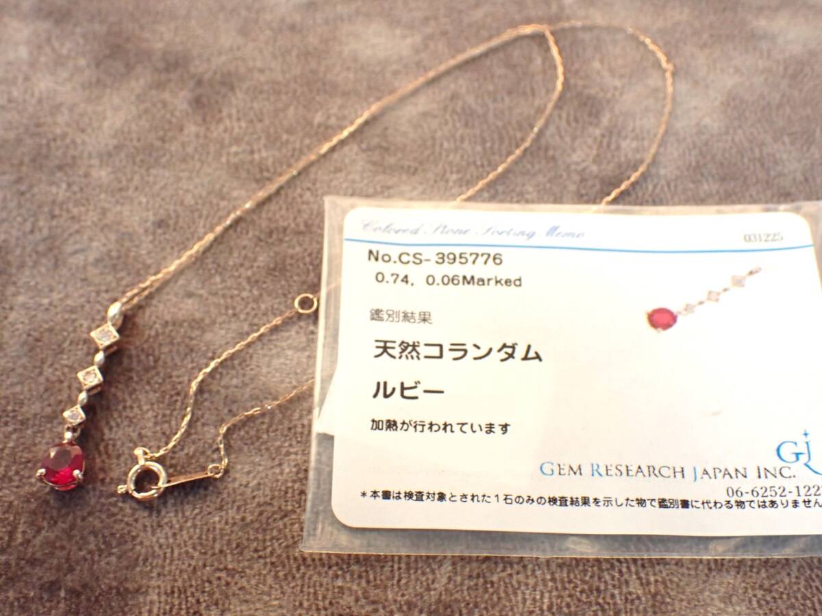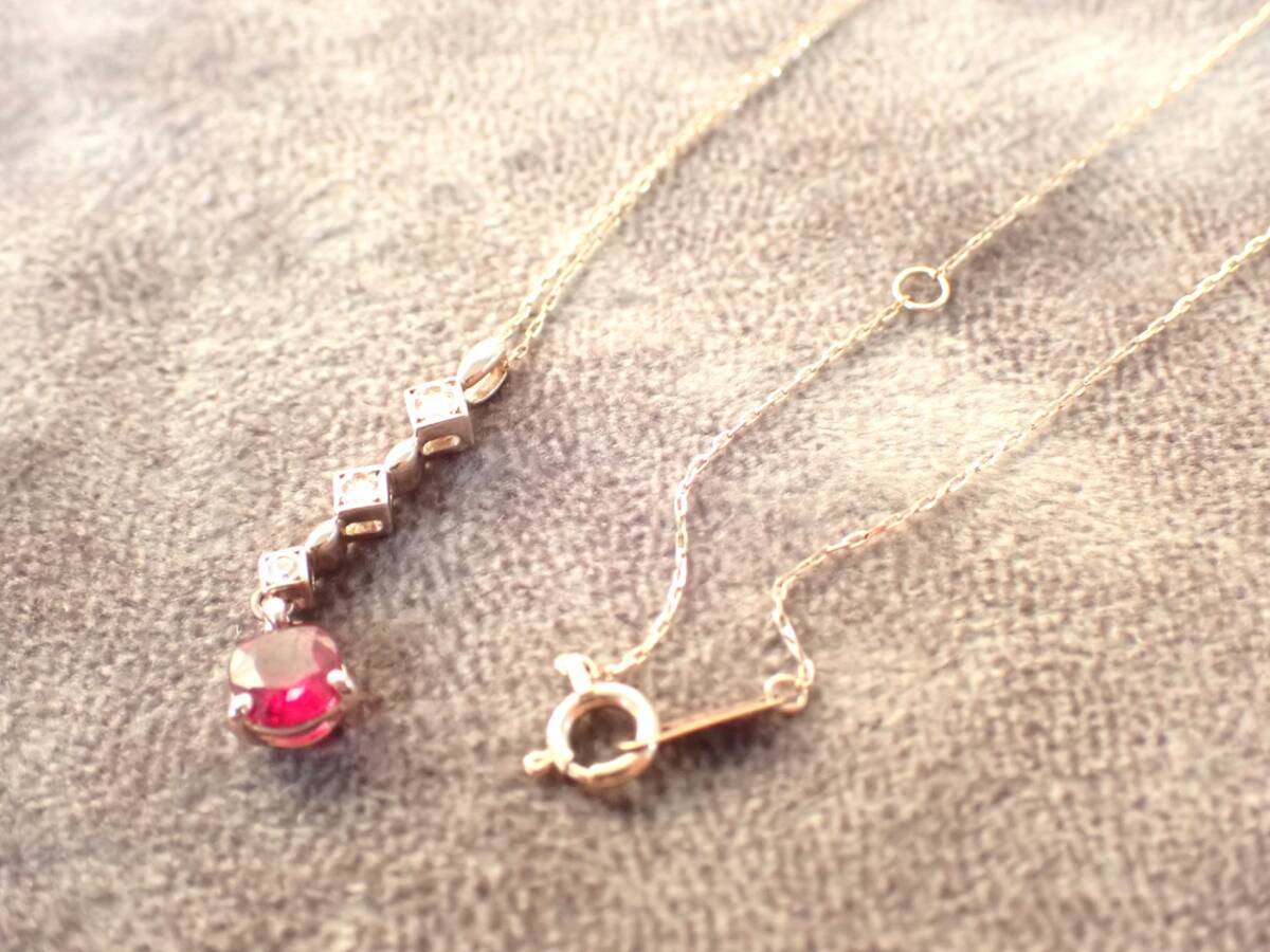 | コメント | 本商品はトップにルビーとダイヤモンドがついたネックレスでございます。金属部にはK18PGが使用されており、ルビーは0.74、FD(ダイヤ)0.06ctでございます。本商品は細かいスレはございますが、全体的にきれいな状態でございます。ルビー石の鑑定証付き。本商品には箱等の付属品はございませんが、緩衝材を巻いて丁寧に梱包し発送させていただきます。注文確定後は1~2日以内に発送いたします。(土日・祝日は発送業務をおこなっておりません)宜しくお願い致します。 | |