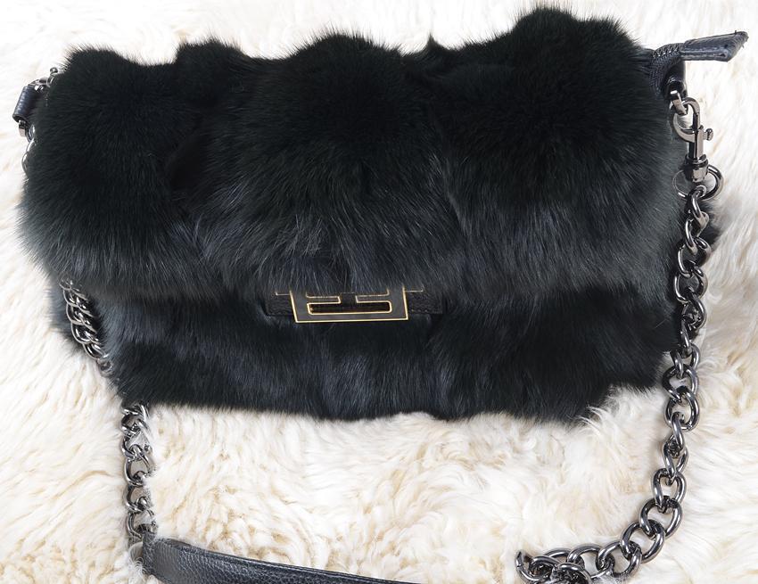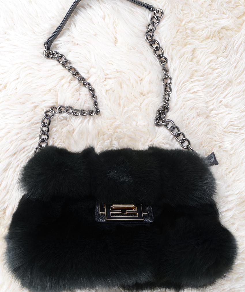 上質フォックスを使用した華やかなファーショルダーバッグダークグリーン 毛皮ファー | |||
