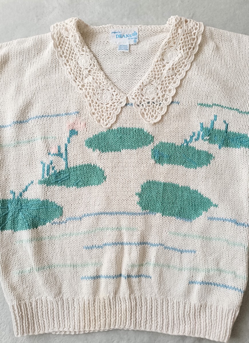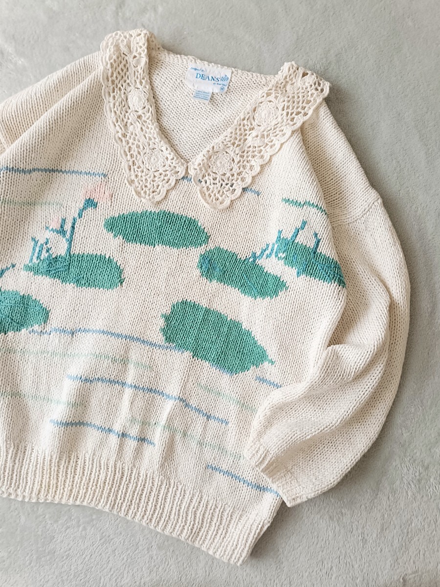 スコットランドのブランドDEANS of Scotlandの睡蓮の葉が描かれたアートなヴィンテージニットです。| 出价者 | 信用 | 价格 | 时间 |