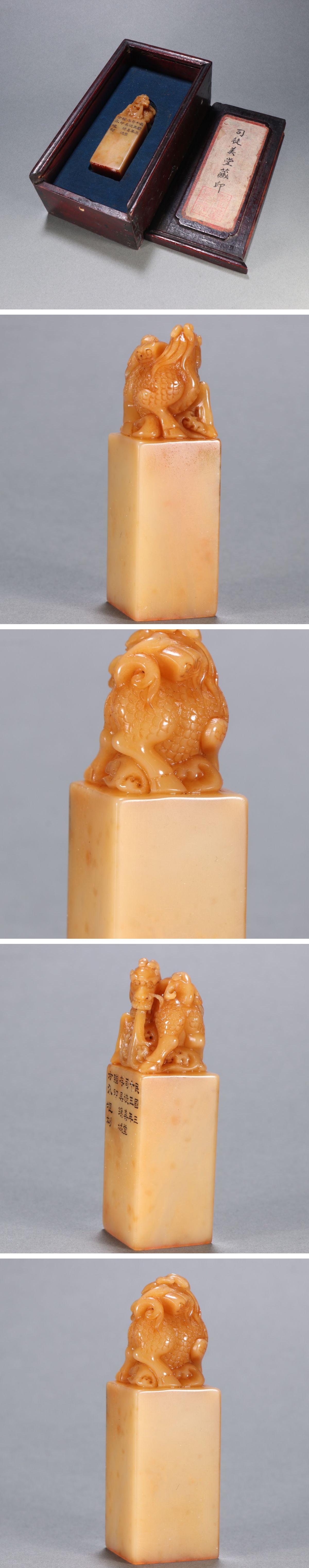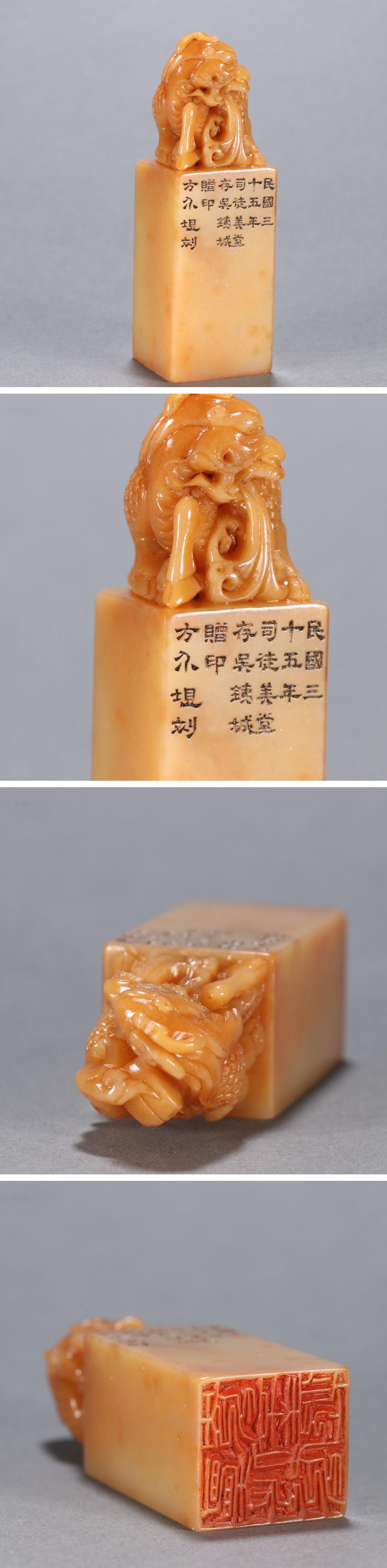 【清】某有名オークション購入 中華民国時代 寿山田黄石 瑞獣紋印章 材質保証 古置物 古擺件 古美術 時代コレクション7L10-SQ8