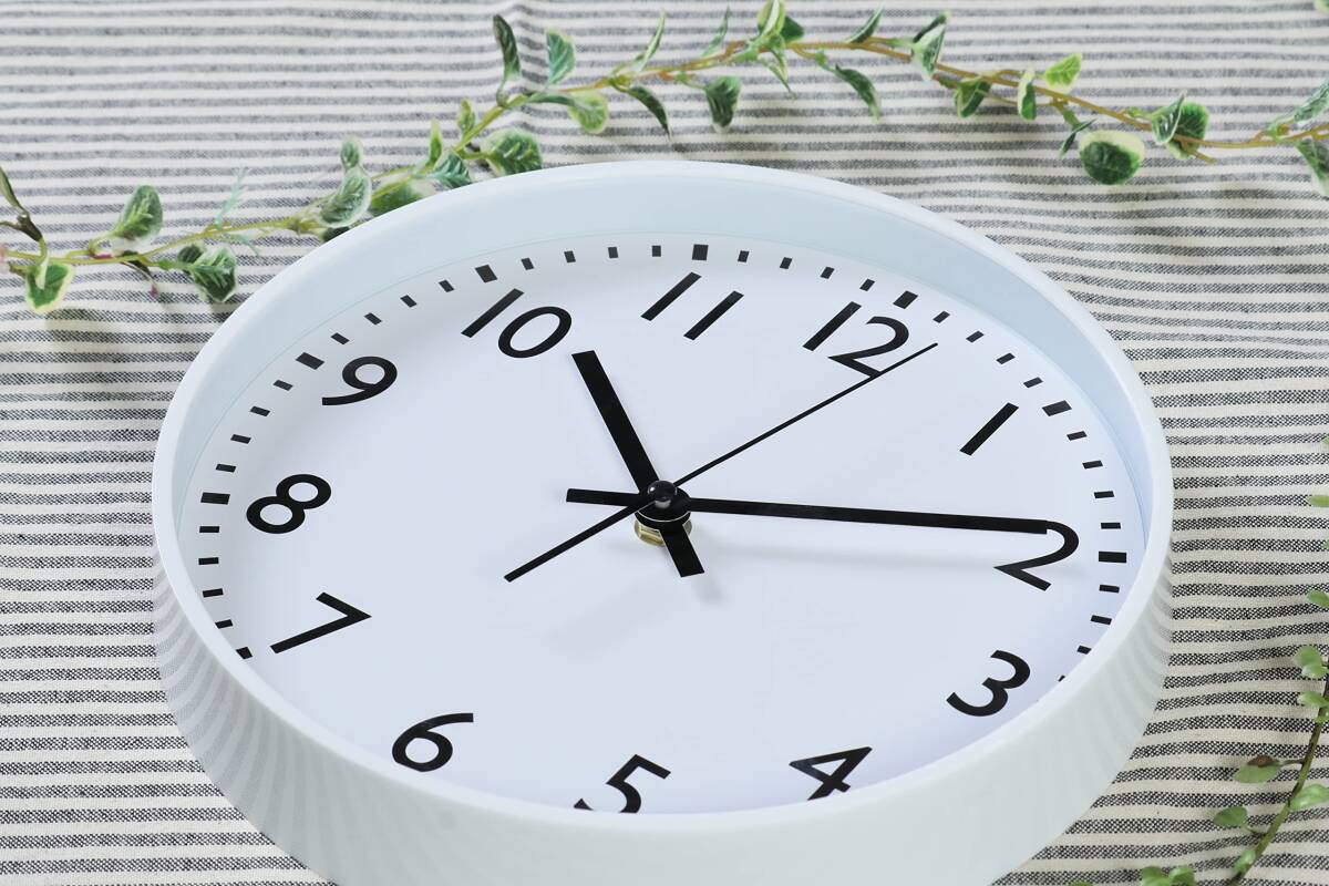 遠くからでも見やすいシンプルなデザインの掛時計。