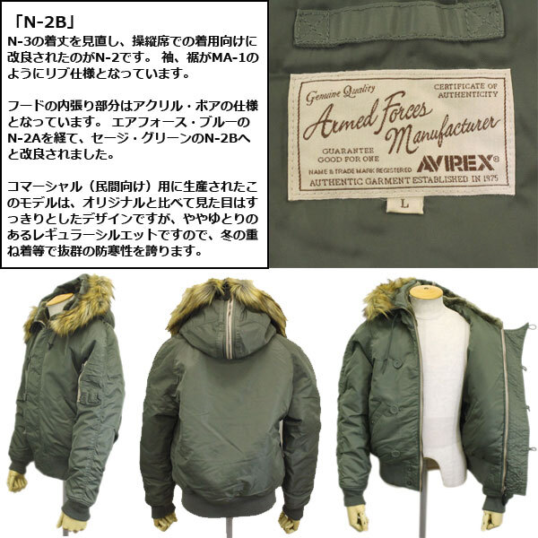 | 商品名 | AVIREX (アヴィレックス) 5952029 N-2B COMMERCIAL コマーシャル フェイクファー フライトジャケット 010BLACK M |