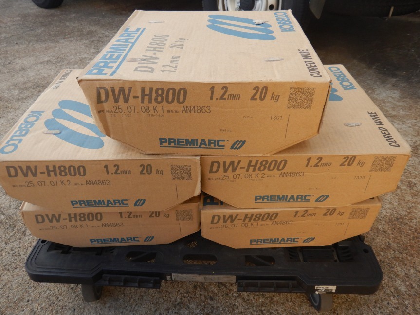 即決税込 未使用品 神戸製鋼コベルコ 半自動溶接用 フラックス入ワイヤー 硬化肉盛溶接用 DW-H800 1,2mm径 20kg 2024年製 5箱100kg 送料無料 =============== 神戸製鋼コベルコ 硬化肉盛溶接用 フラックス入ワイヤー DW-H800 ワイヤー径 1,2mm 20kg 溶着金属組織は 炭化物、硼化物の折出した高硬度の マルテンサイト組織になります。 激しい土砂摩耗に適しますが、 もろく割れやすいため、衝撃力の 作用する箇所には不向きです。 製造年 2024年 実際に使用するために購入し 結局使用しなかったものを 当店にお売りいただいたものです。 製造は2024年以降のものですので 年数はそれほど経過しておりません。 1入札で20kgワイヤー5箱 合計100kgのご落札です。 送料無料にて 発送させていただきます。 在庫調整のため、数量限定で まとめてお安く出品しております。 20kgを4箱以下ご必要な場合は 他のオークションで出品しておりますので そちらでご落札ください。 西濃運輸での発送か ゆうパックでの発送の いずれか安い発送方法での 発送とさせていただきます。 会社様(個人事業主様も含む) の場合は会社名(屋号)を 取引メッセージにてお知らせください。 ================ 即決ですので入札=落札です。 落札価格は消費税込みの金額です。 早いもの勝ち!! ================ |