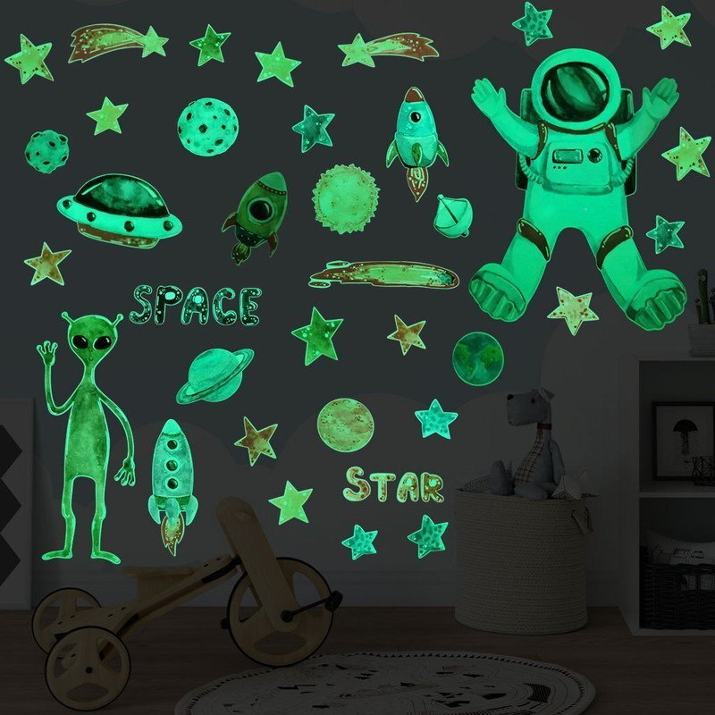 暗闇で光る☆蓄光 02 宇宙飛行士set グリーン 宇宙 スペースシャトル 宇宙船 ウォールステッカー 壁 天井 シール リメイク DIY