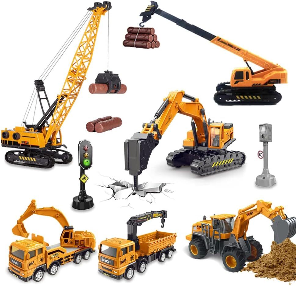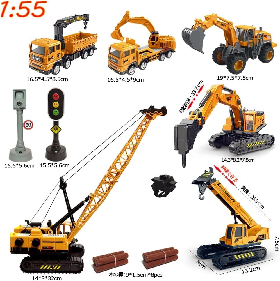 ・働く車両セット:車体6体、交通カメラ、交通信号灯、木の棒のセット。