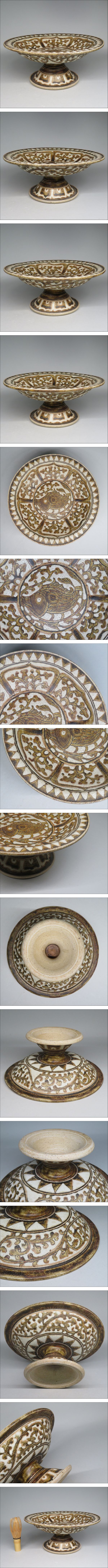 | 「都内コレクター所蔵品」タイ スンコロク 宋胡録 白釉鉄絵魚文高台皿 タイ スワンカローク窯 東南アジア古陶器 | ||
