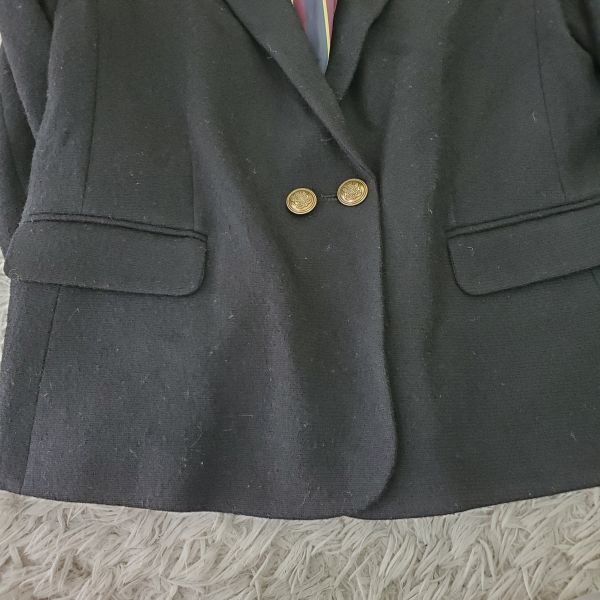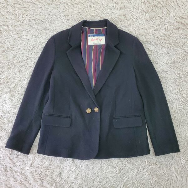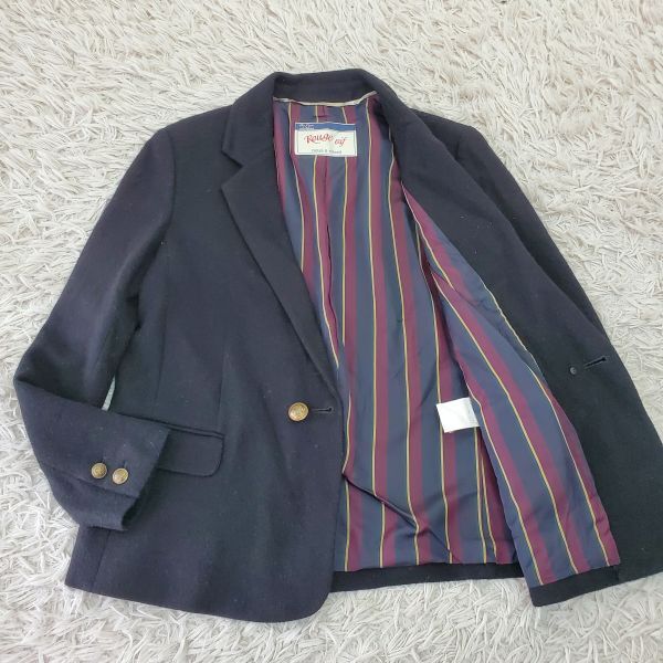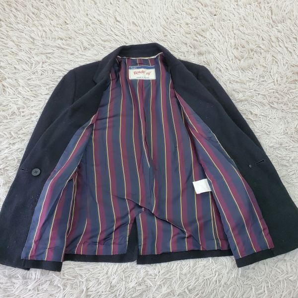 フロントは金ボタンデザイン、裏地はストライプ柄です。