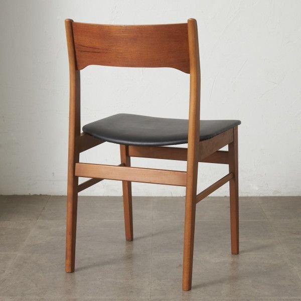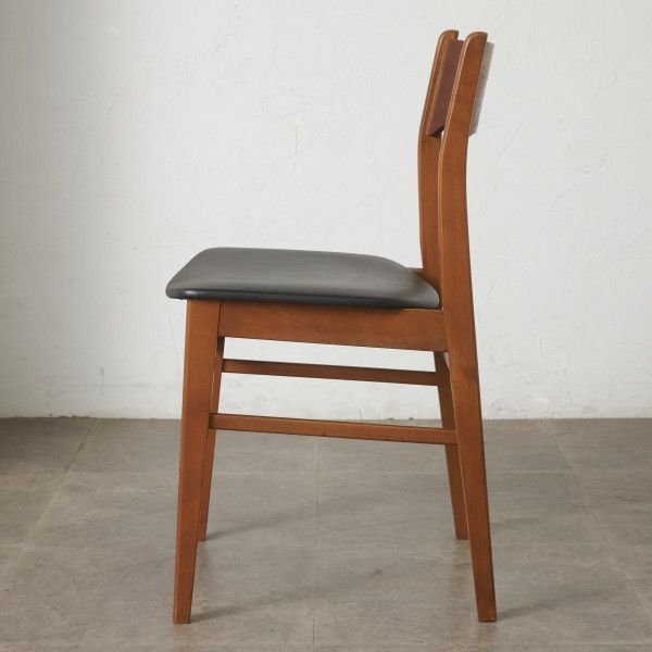 洗練されたフォルムが美しいダイニングチェア。背もたれの緩やかなカーブが絶妙なフィット感を生み、快適な座り心地を実現しています。実用的でありながらも作り手のこだわりを感じさせる、上質なヴィンテージファニチャーです。