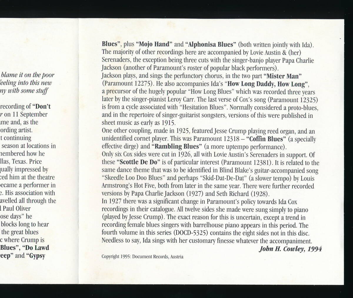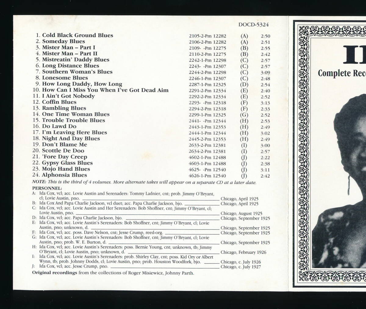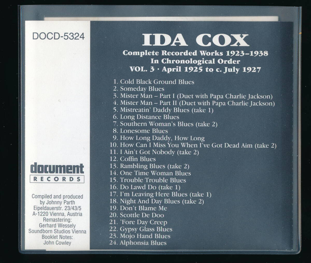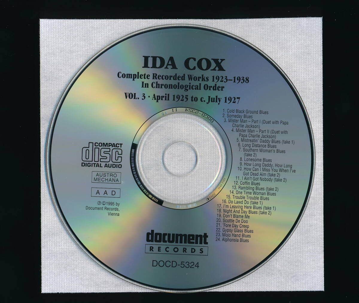 ☆IDA COX☆COMPLETE RECORDED WORKS 1923-1938 VOLUME 3 (1925-1927)☆1995年輸入盤☆DOCUMENT DOCD-5324☆