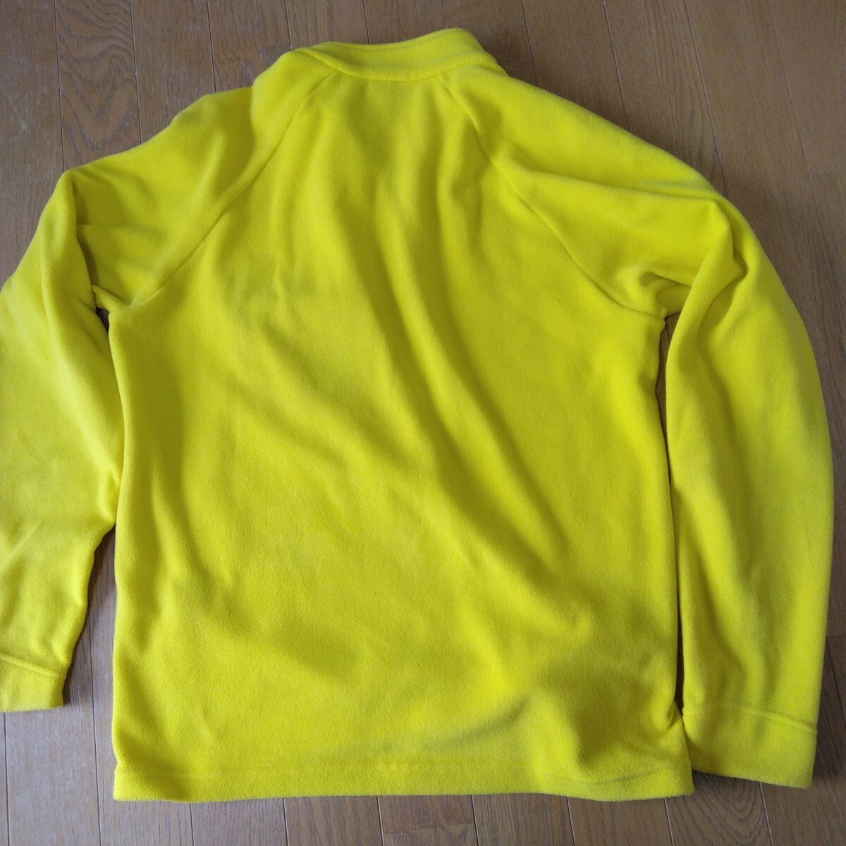 綺麗なイエローの ハーフジップです サイズは M ですが 男性用か女性用か分かりません 身幅が50cm 着丈が63cm になっています センター ジッパーの横に 目立ちませんが 小さな 汚れのようなものがありますが 洗濯したら取れると思いますが どうでしょうか