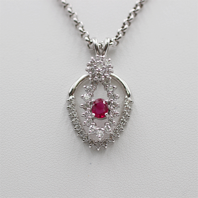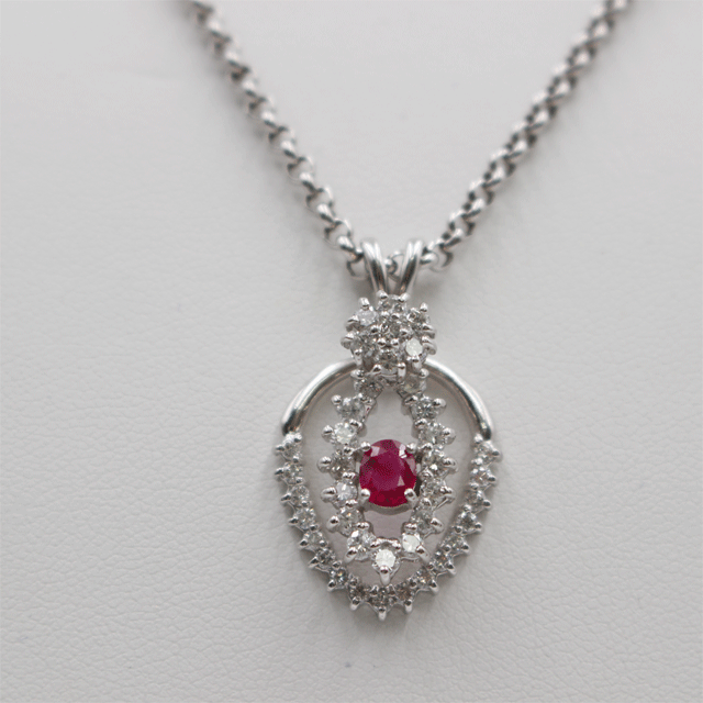 | Pt850/Pt900 ネックレス ルビーペンダント付 R0.49ct/D1.0ct/10.2g |