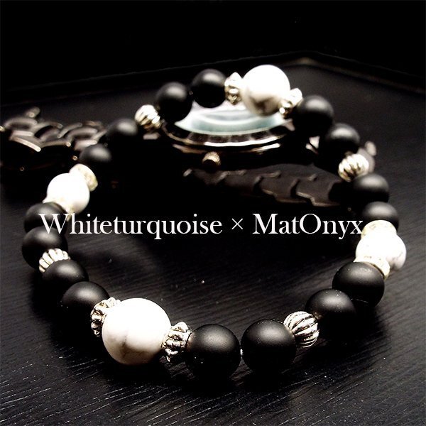 | 【STONE KITCHEN 天然石 パワーストーン】 人気スタイル、細身ブレスのメンズ新作☆ 落ち着いた印象を与えてくれるブレスレット♪ ホワイトターコイズとマットオニキスの組み合わせは、変化に順応するエネルギーをもたらし力を高める効果があるといわれています。 心身の新陳代謝を促すとされる相性です。 以前失敗したことに再チャレンジするときによいでしょう。 サイズ:ホワイトターコイズ 10mm・8mm マットオニキス 8mm 内周:約18cm 1点 注意事項 ※金属部分は汗や汚れ等で変色する場合がございます。気になる場合は 金属磨きや布等で軽くふき取る事をおすすめします。 ※石の種類によっては、艶を引き出すことを目的として、ワックスや着色加工がされているものもあります。 ※表示のサイズは必ずしも最大値・最小値のサイズのものが入っているわけではございません。 ※天然石のため同じものでも色味・模様などが異なります。 ※照明の具合で実際とは色合いが異なる場合がございます。 また、天然素材特有のクラック・内包物を有する場合がございます。予めご了承下さい。 | |||