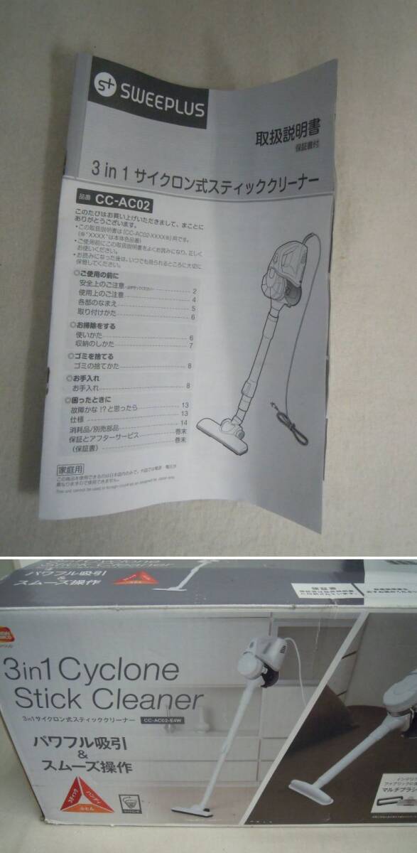 | (く-R-38) サイクロン式掃除機 SWEEPLUS 3in1 Cyclone Stick Cleaner CC-AC02-E4W 掃除機 クリーナー 動作確認済み 中古 | |
