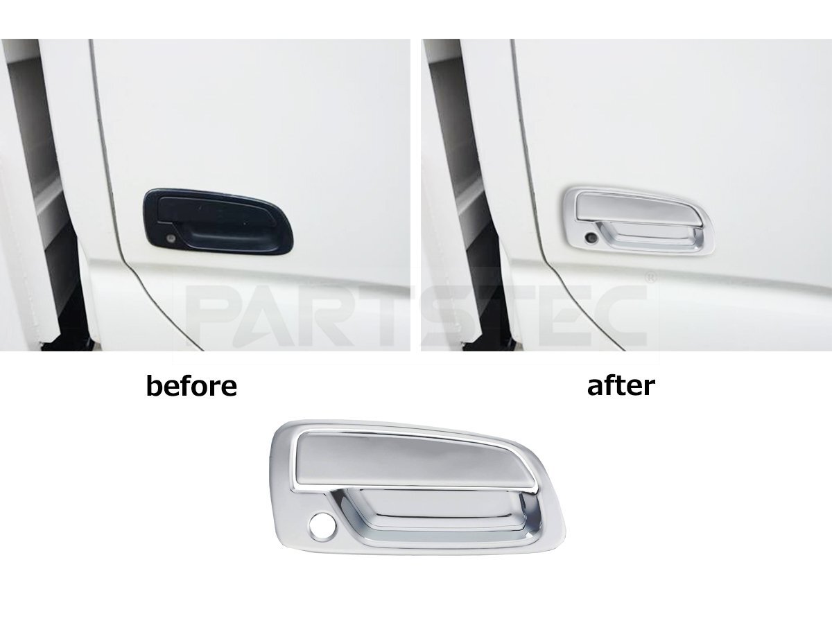| セット内容 | ・メッキカバー 運転席 助手席x 1セット ※ダブルキャブは2セット必要になります。 ※車両によっては、お客様ご自身で両面テープを増していただく必要がある場合がございます。 |