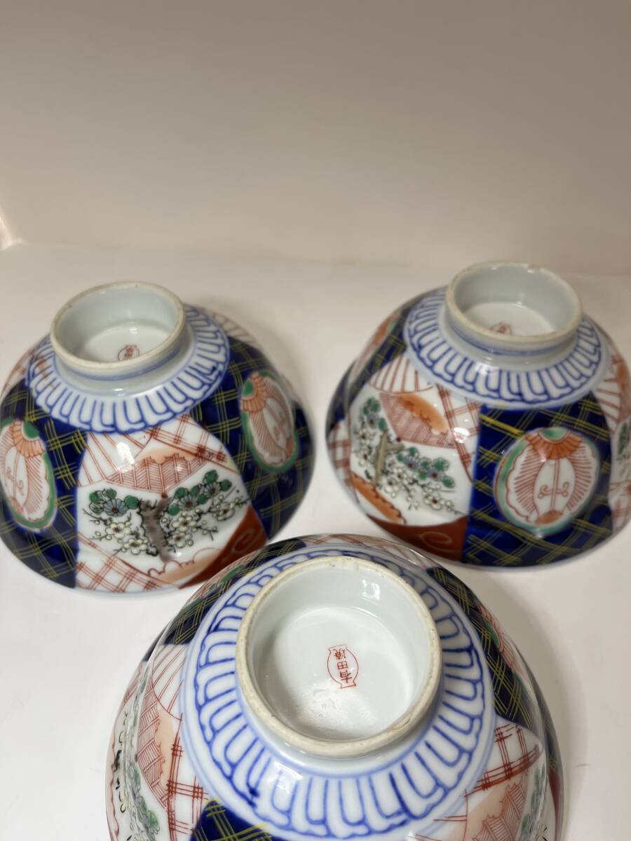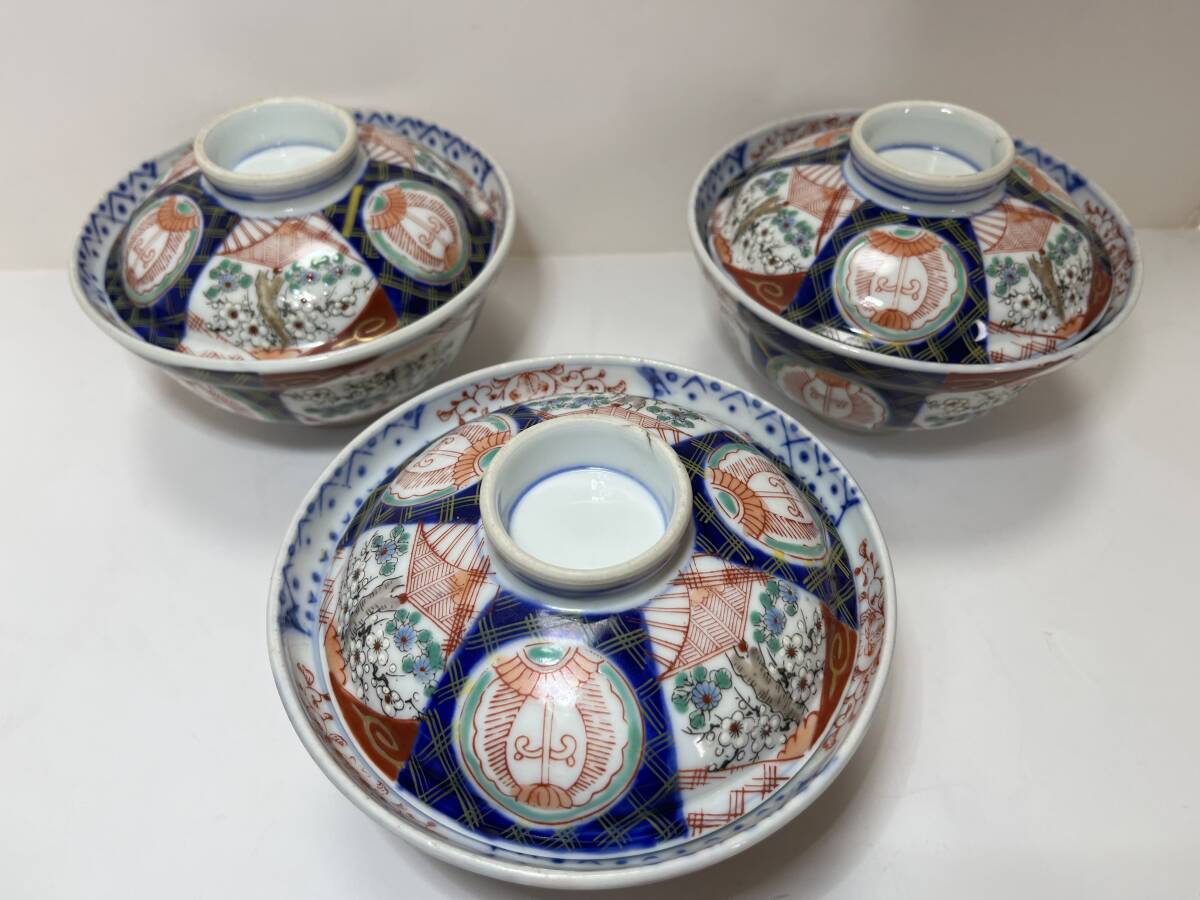 | ◆◇A003) 古伊万里 赤絵 蓋茶碗 蓋丼 丼ぶり 3客◇◆ | |