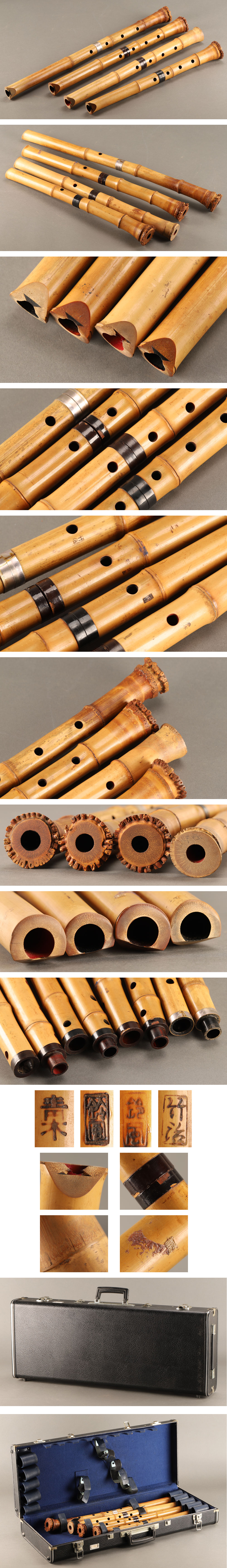 大長さ 約67cm 唄口 外径 約3.9cm 内径 約2.0cm 管尻 外径 約5.4cm 内径 約1.8cm 小長さ 約49cm 唄口 外径 約3.7cm 内径 約2.0cm 管尻 外周 約6.2cm 内径 約1.5cm |