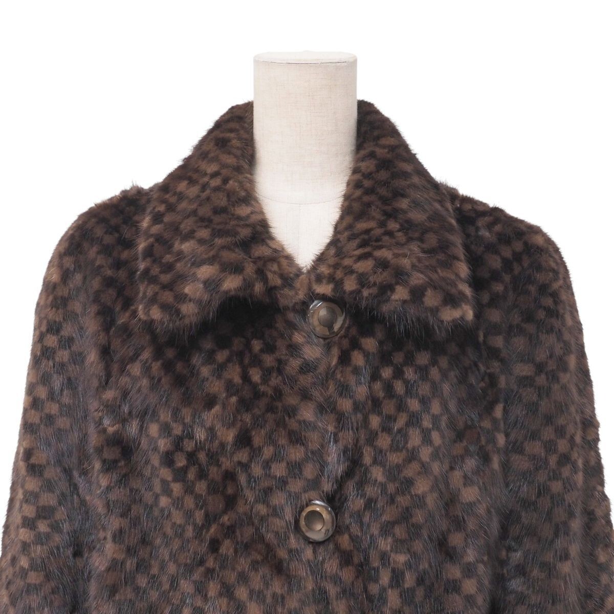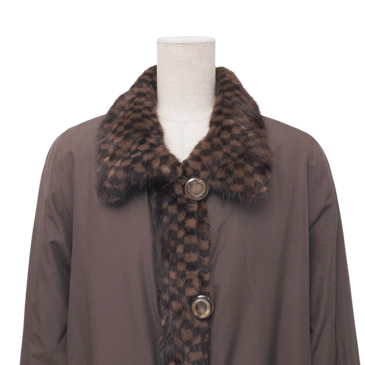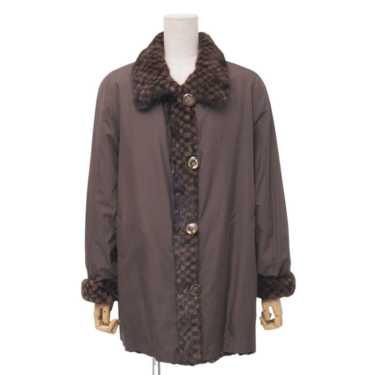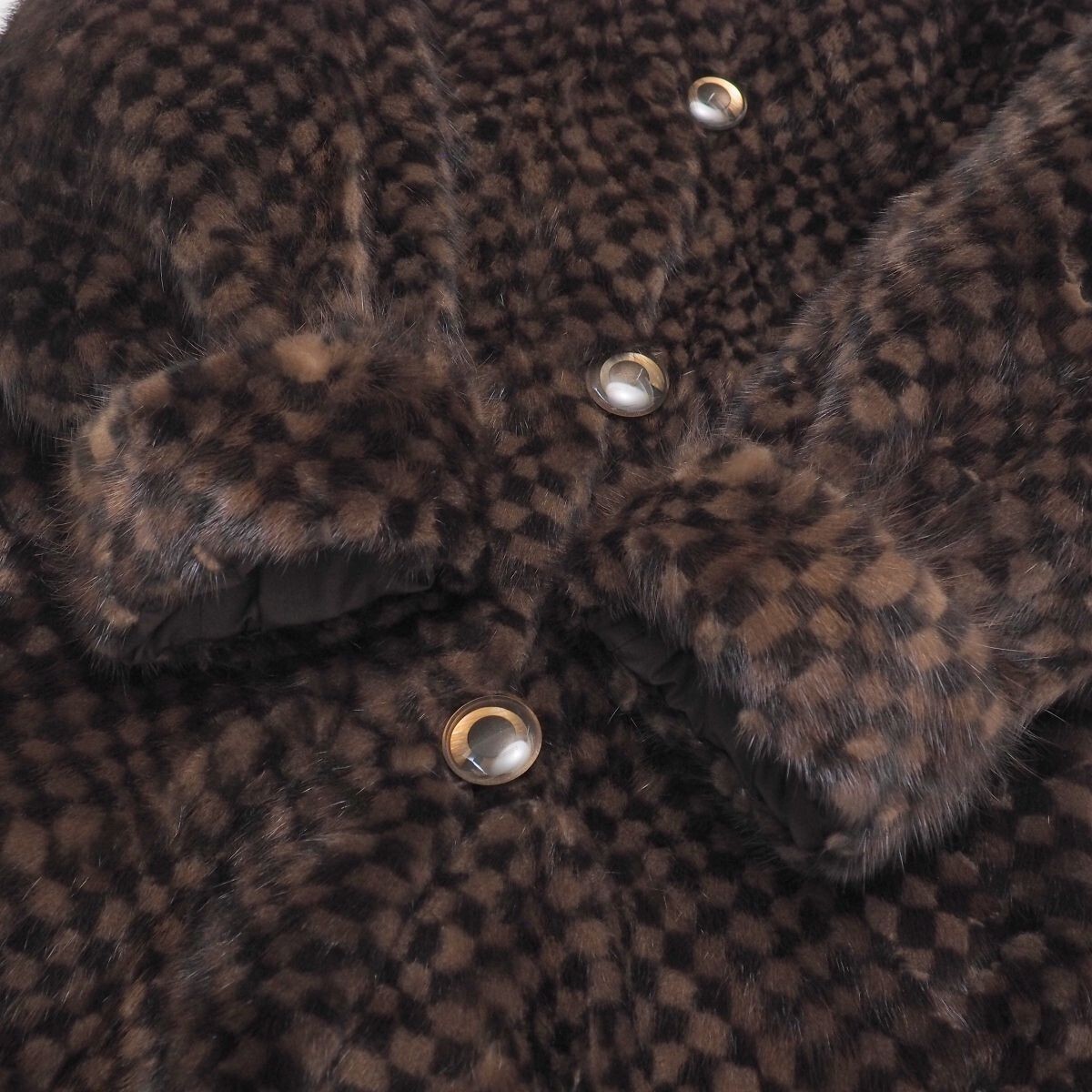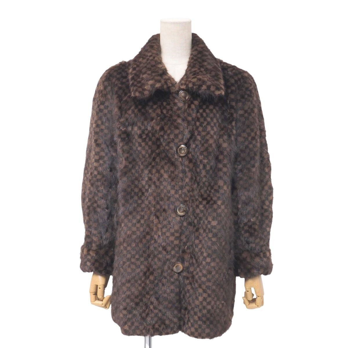 | GS4818◇市松模様 ミンク × 光沢生地 リバーシブルジャケット ファーコート 毛皮コート ハーフ丈 L相当 ブラウン系 | |||