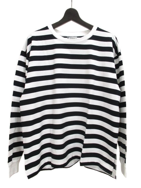 肩を落として、身幅も広めといった今の時代の空気感のあるオーバーサイズな作りで、リラックスした着こなしを楽しんで頂けるボーダーロンTです。