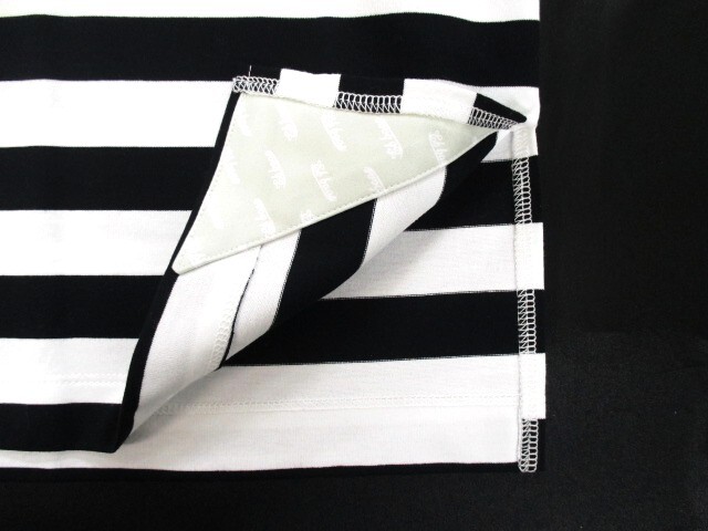 やや幅広のボーダー+オーバーサイズな作りで気取らないカジュアル感があります。カジュアル感があるうえで、モノトーンの配色や、さらっとしていて、ほんのりとツヤ感があるようなきれいなコットン生地を使うことで、安っぽいカジュアルにならないような、さりげない上品さを含ませています。