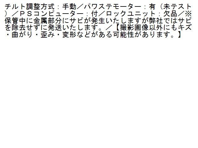 | 商品情報 | チルト調整方式:手動/パワステモーター:有(未テスト)/PSコンピューター:付/ロックユニット:欠品/※保管中に金属部分にサビが発生いたしますが弊社ではサビを除去せずに発送いたします。/【撮影画像以外にもキズ・曲がり・歪み・変形などがある可能性があります。】 | ||