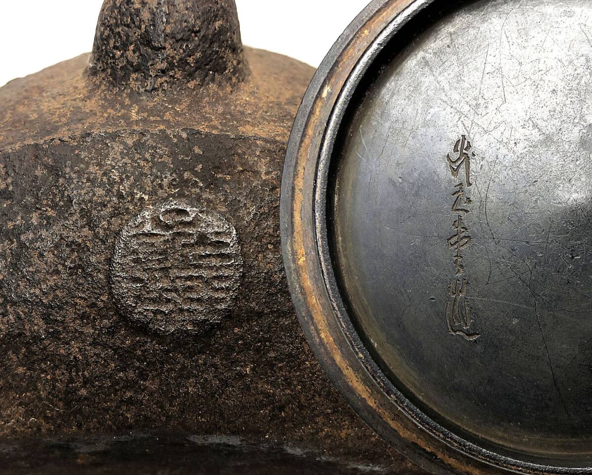| 横(注口含む)/17,5 ㎝ 高さ/21 ㎝ 重さ/約 1.96 ㎏ (358 g 銅蓋含む) 鉄味の良い逸品です。 蔵出しの未手入れ品ですので、鉄さび、湯垢等 過年の使用による汚れございます。 補修痕なく、水漏れなし(48時間水漏れ検査済みです。) 出来るだけ実品に近い写真を掲載いたしておりますが、 光線の具合で多少実物と画像で色の違いなどあります。 古物にご理解いただける方のご入札宜しくお願いします。 | ||||