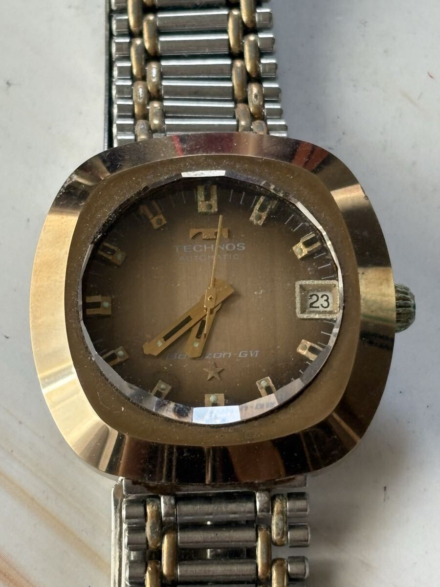 1円〜 TECHNOS テクノス ボラゾン G VI オートマチック 腕時計 デイト ゴールド文字盤 コンビカラー| 出价者 | 信用 | 价格 | 时间 |