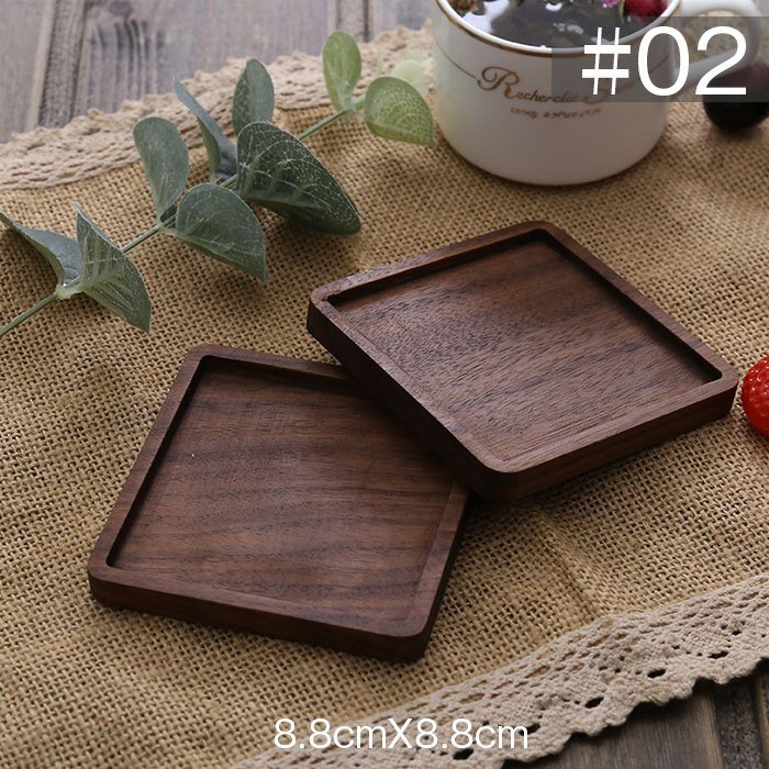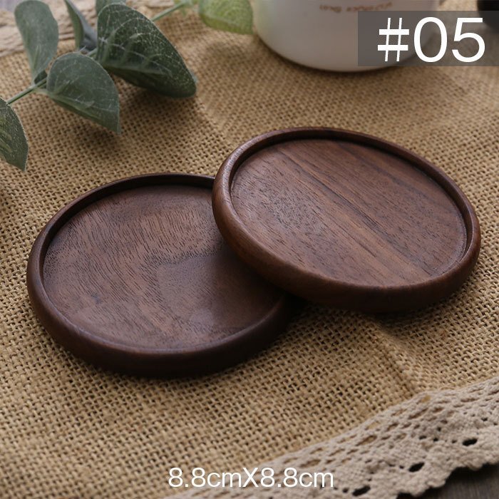 コースター 木製 断熱 簡約丸型 正方形 茶托 断熱 茶パッド 滑り止め 木製 2枚セット 防水 クルミ 8.8cm 和風コースター ☆#05