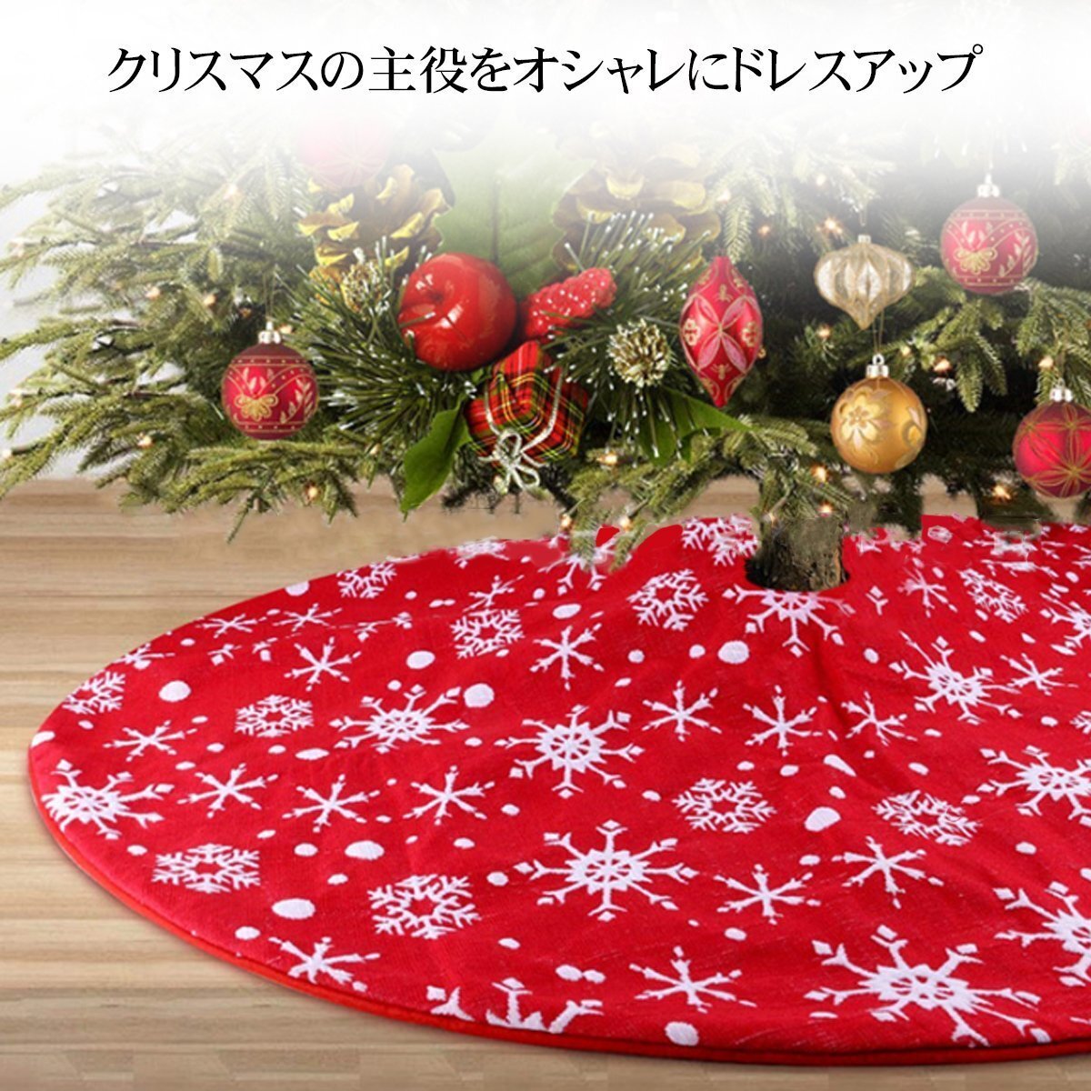 素敵なクリスマスムードを演出する北欧風ツリースカートが登場! 足元に敷くだけで北欧風の雰囲気あるツリーに大変身! 当社自慢のクリスマスツリーとも相性抜群です! シンプルなツリーも良いけど何だか味気なく感じる・・・、といった方にオススメの「ツリースカート」です。 ツリーの足元に飾るだけでツリーを華やかに彩り、 電飾のコードや土台をまとめてすっぽりと覆い隠してくれるのでツリー全体の見栄えが段違いにアップ! クリスマスらしい雪の結晶があしらわれたデザインなので 飾るだけで見た目も可愛く、豪華なツリーに仕上げてくれます! マジックテープ仕様で簡単に着脱可能なのも嬉しいポイント。 ツリースカートの周囲におもちゃやぬいぐるみ等を飾る事で より楽しくワクワクする雰囲気を演出してくれます。 デザイン性を追及した本格派ツリースカートで 例年以上にオシャレで、雰囲気のあるクリスマスを過ごしてみてはいかがでしょうか? カラー:レッド 素材:コットン サイズ(約):直径90cm |