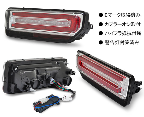 商品番号:L225CL 車種:JB64 ジムニー/JB74 シエラ/JC74Wノマド 商品名:GタイプLEDテール カラー:クリアー ----------- ※ご注文後のカラー変更はご対応致しかねますので ご入札前に必ずカラーをご確認下さい。 他のカラーの出品ページは 【 こちら 】 ▼ 商品説明 クリスタルアイ 新製品 JB64/74/JC74 ジムニー/シエラ/ノマド GタイプLEDテール 流れるシーケンシャルウインカータイプ 立体的なレンズ面とレンズ下部をスモークにすることで メルセデス新型Gクラスのテールを再現した、本物志向のLEDテールです。 スムーズかつダイナミックに流れるシーケンシャルウインカー採用で まさに高級車のような華やかさを与えます。 ▼ 商品詳細 ■新品セット ■高輝度シーケンシャル ウインカーLED ■ハイフラ防止抵抗付属 ■カプラーオン取り付けOK ■Eマーク(※1)取得済み ■取り付け説明書 保証書付属 ▼ 適合車種 JB64/JB64W ジムニー JB74/JB74W ジムニーシエラ JC74W ジムニーノマド(※2) ※2 ノマドは本製品を装着することで、純正では左側のみ点灯する バックランプが両側点灯となります。 (本製品はカプラーオンにて接続可能となり、 カプラーにはバックランプ電源が 供給されていますので、配線加工の必要はありません。 なお、本製品は右側のリアフォグ機能が 搭載されておりませんので、予めご了承ください。) 安心の水漏れ、LED切れ1年保証付き。 ※1 保安基準適合品 |