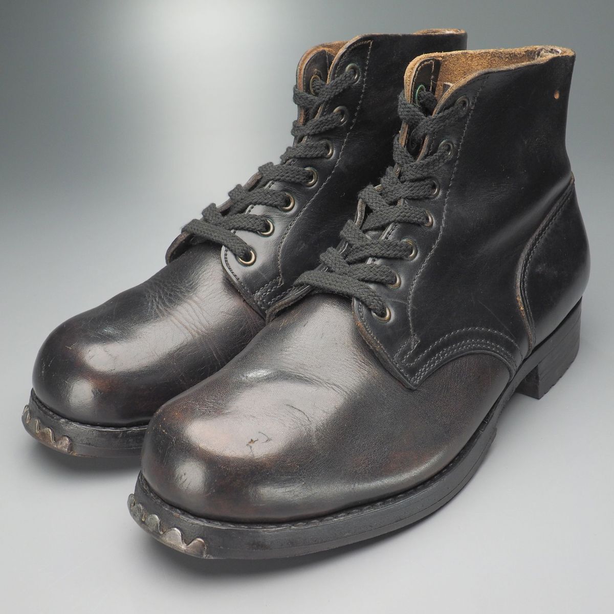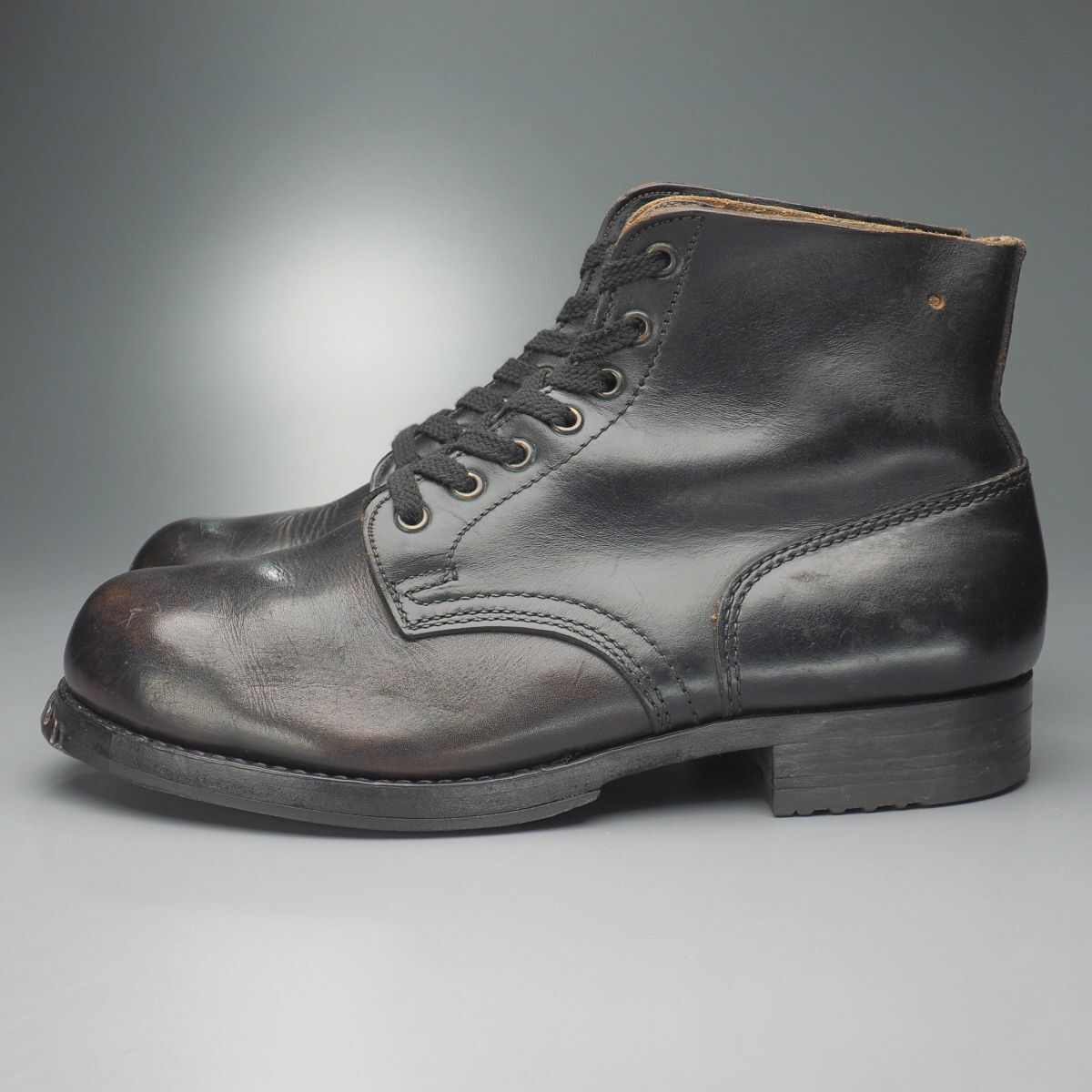 | W3934//ヴィンテージ/ドイツ軍/メンズ/レースアップブーツ/ミリタリーブーツ/プレーントゥ/ショートブーツ/革靴 | |||