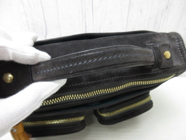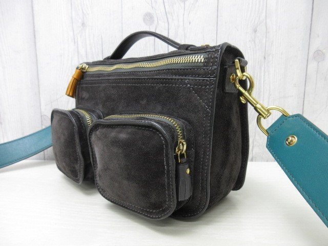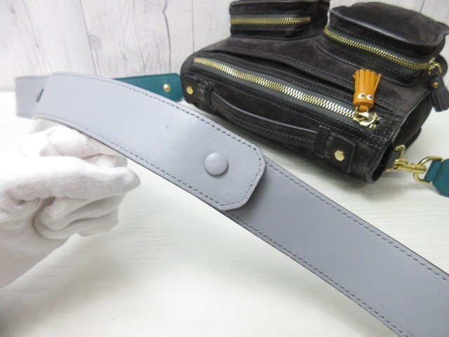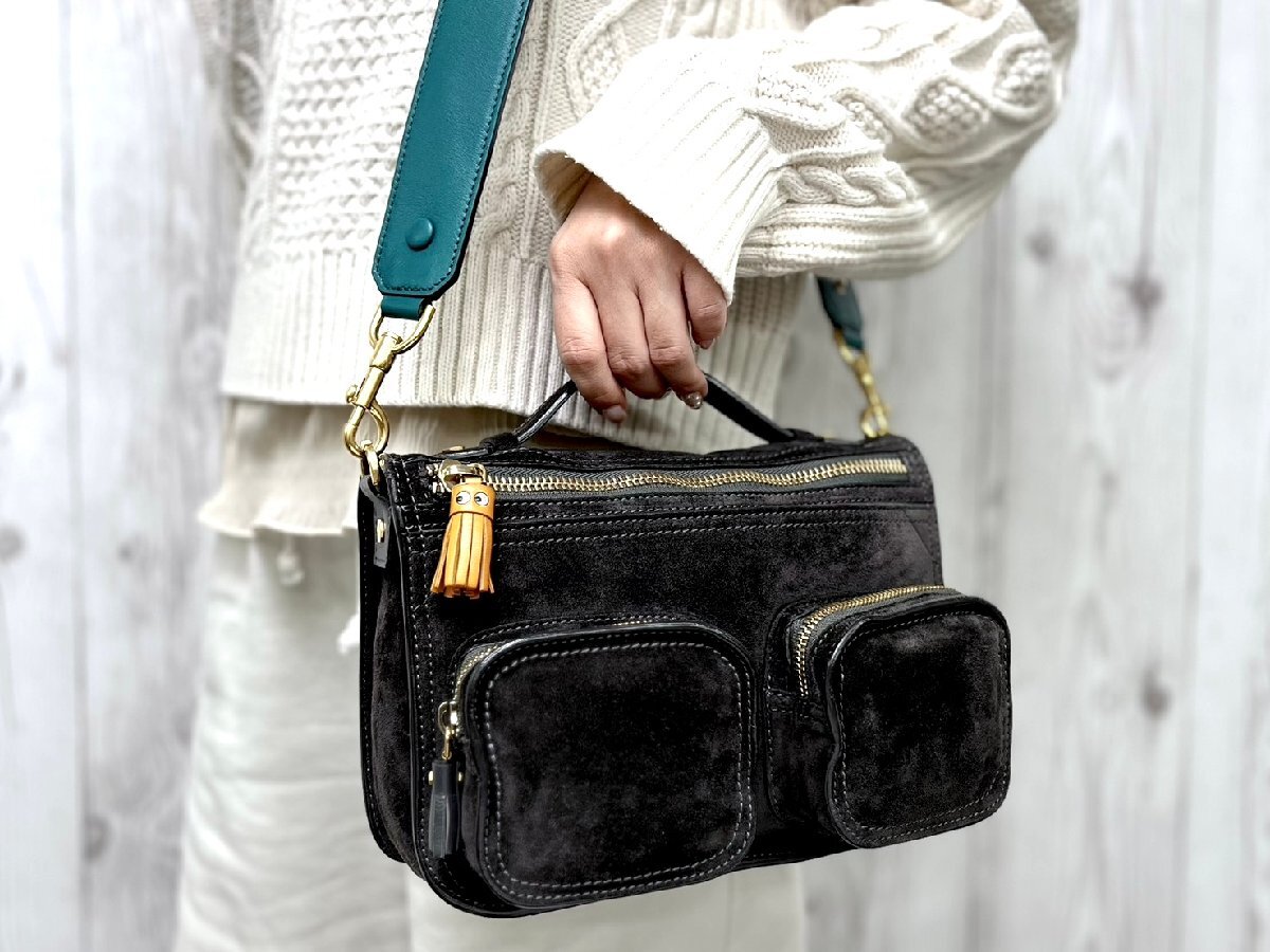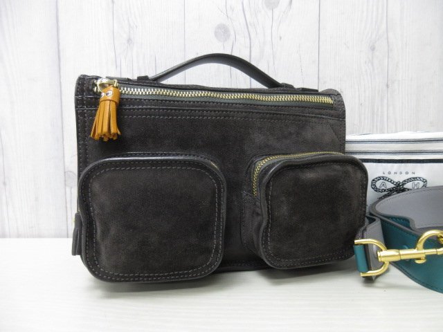 | 【ブランド】ANYA HINDMARCH アニヤハインドマーチ 【形】ハンドバッグ ショルダーバッグ 開閉ファスナー・外ポケット3・内ポケット1 【素材】スエード×レザー 【色】ブラック系 【A4収納】不可 【サイズ】横約24×縦約16×幅約9×ハンドル約14×ショルダー最大約128センチ 【付属品】保存袋・ショルダー 【状態】 ⑨極美品 未使用品ではないのでスレ汚れなどあるかもしれませんが、素敵なバッグになります。 ※できる限り写真に載せておりますのでご参考ください。 ※※※状態の詳細※※※ ⑩新品・未使用 ⑨極美品 ⑧美品 ⑦一般的な使用感でも美品に近い ⑥一般的な使用感 ⑤多少使用感あり ④使用感あり ①~③ジャンク品・リペア必要 | ||