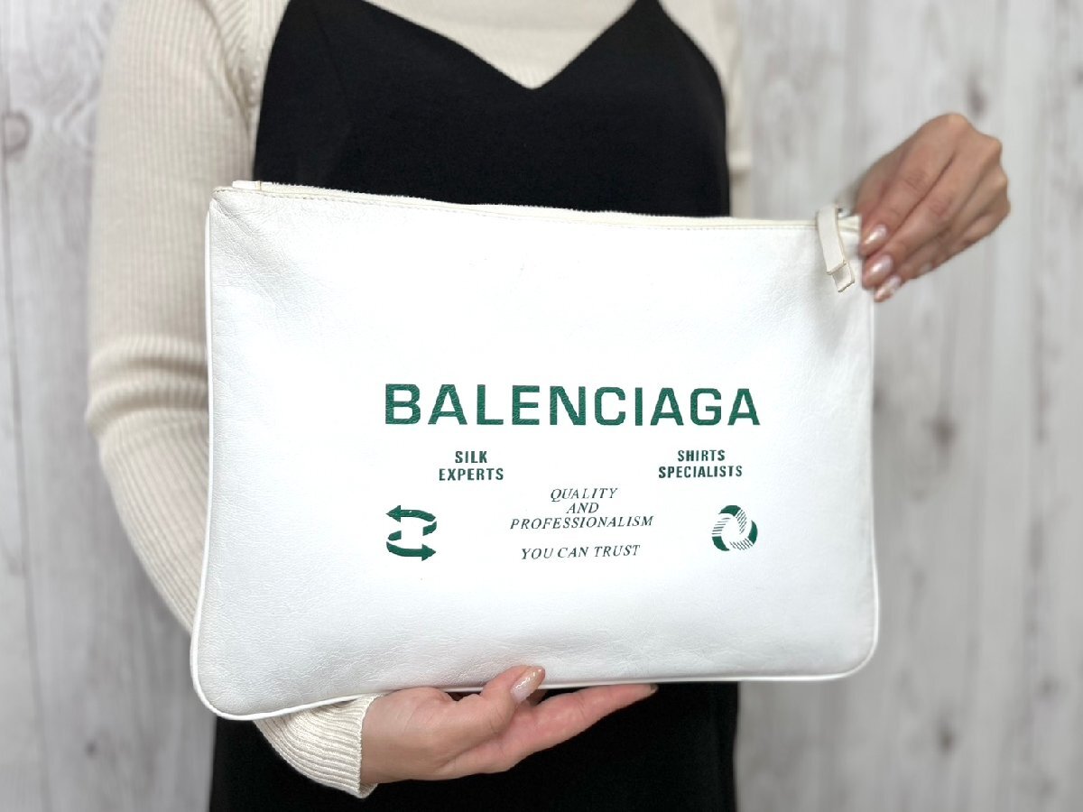 | 極美品 BALENCIAGA バレンシアガ スーパーマーケット クリップ M クラッチバッグ バッグ レザー 白 メンズ 92415Y | ||