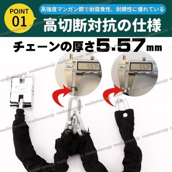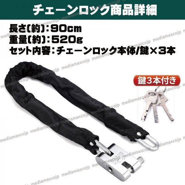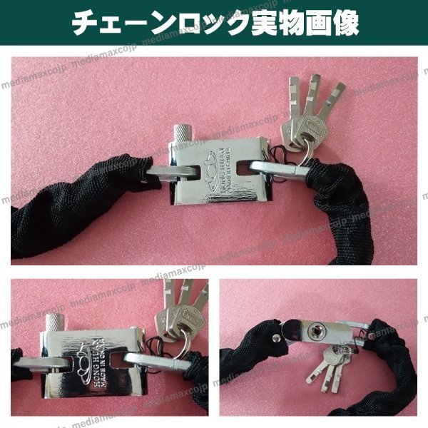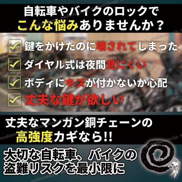 ●説明 鍵で開錠するタイプのチェーンロック 長さ必要十分実用的な100cmです チェーンの厚さは5.57mm シリンダー部分は厚さ18.0mm 横幅34.5mmでドリルでも壊れない ピッキングにも強いシリンダー 解錠リスクも軽減 特殊な硬化スチールから作られたチェーンリングと 保護スリーブで大切な愛車を盗難から守ります。 自転車・バイク用以外にも倉庫など他の用途にもご使用いただけます ●商品詳細 長さ(約):100cm 重量(約):520g セット内容:チェーンロック本体/鍵×3本 カラー:ブラック |