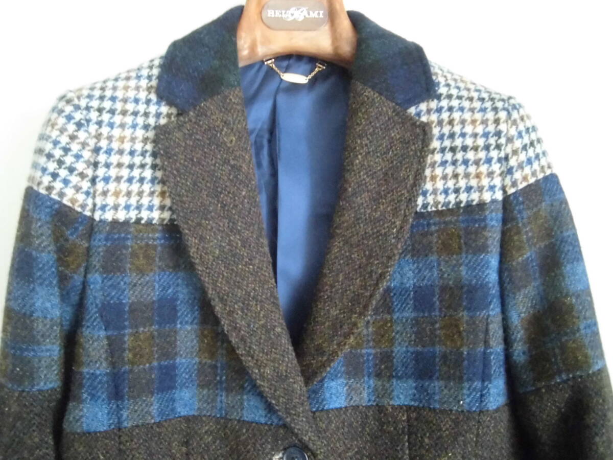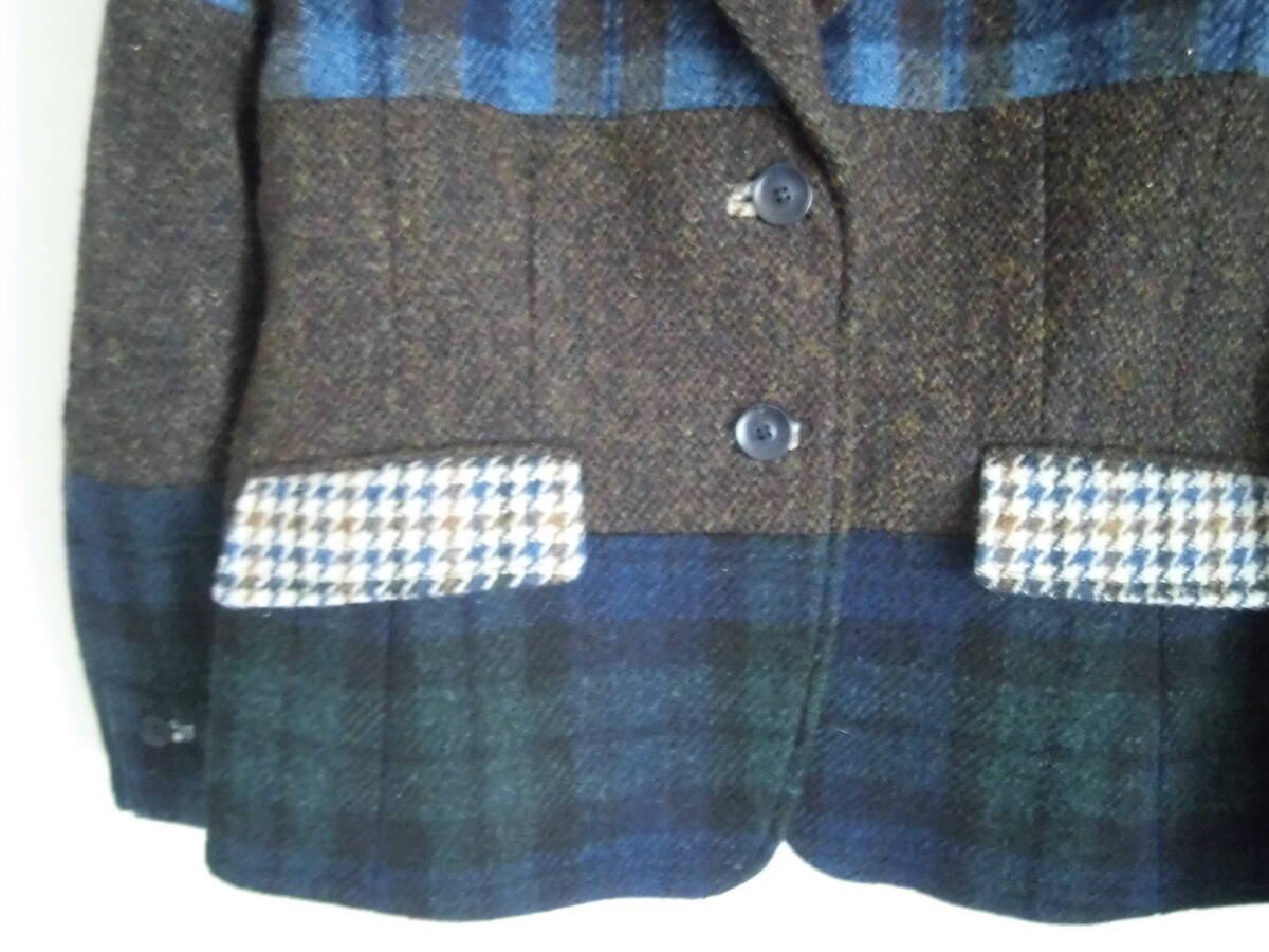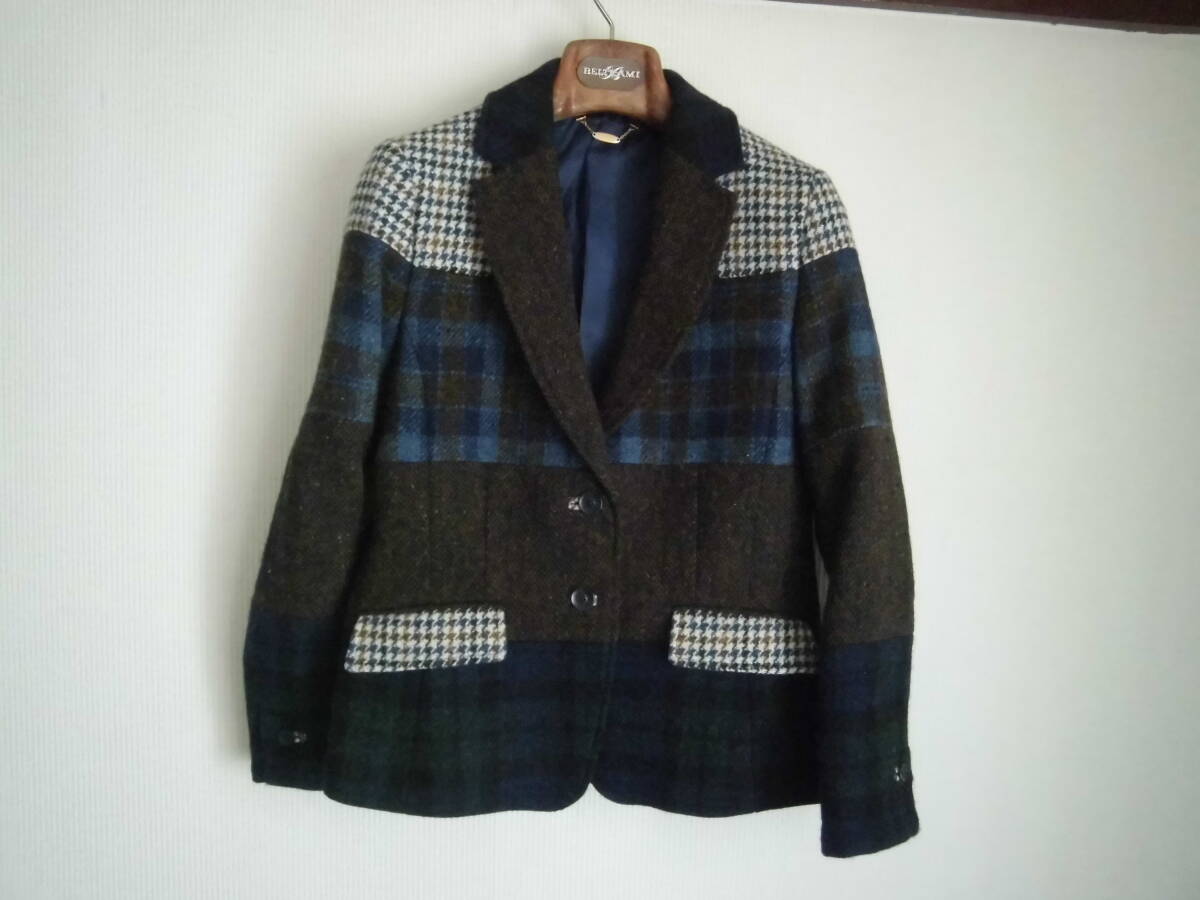 ★着用品の(スキャパ)の製品です。 ★色は茶系・ネイビー・アイボリー等、素材はウール100%、サイズ表示は(40)、状態は良好です。 ★実寸は平置きで、(肩幅38)(袖丈56)(脇下身幅45)(着丈57)位です。 ★4種類のハリスツィードをつなぎ合わせたステキなデザインの製品です。 |