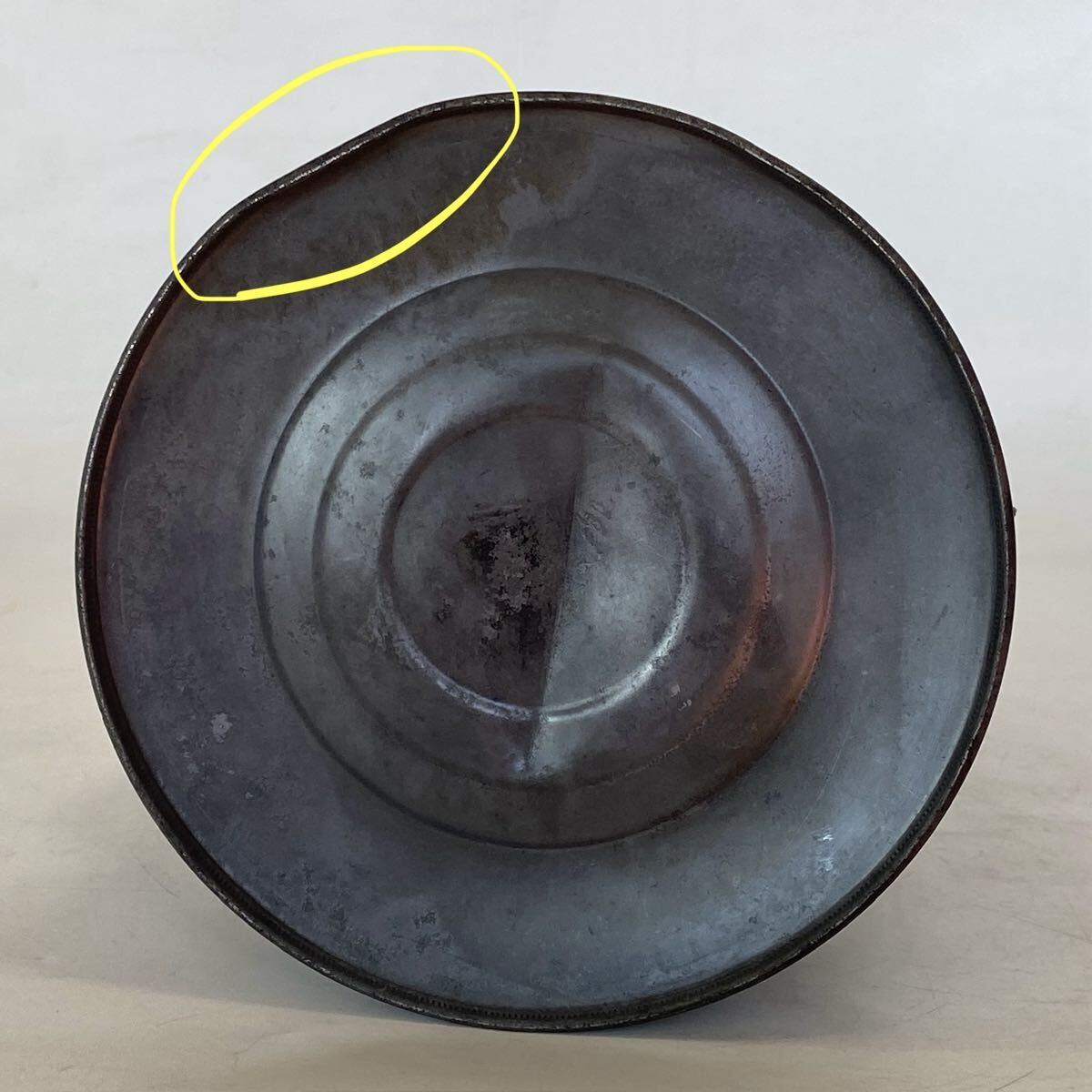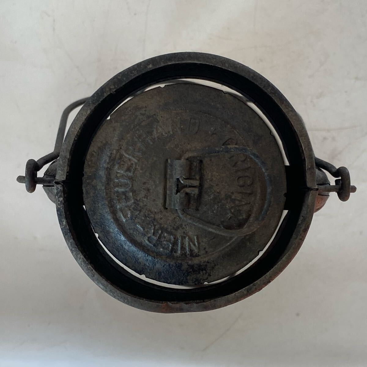 | ご覧いただきありがとうございます。 1902 年創業のドイツの老舗ランタンメーカーFeuerhand(フュアーハンド)社の、ハリケーンランタンです。 stkとはSturmkappe(風防)の略称。現行モデル276とサイズは同じですが、風防付きの廃盤モデルです。 表面が劣化してザラザラとした感じになっています。 部分的に黒い塗装が残ってムラがあります。 風防のフチに凹みがあります(写真5枚目)。 タンクに変形があります(写真8枚目)。 ホヤは欠けなくきれいです。 ウィックの上下、バーナー部脱着、燃料キャップの脱着、リフターの上下など可動箇所に問題ありません。タンクの漏れありません。 本体高さ 26cm | ||