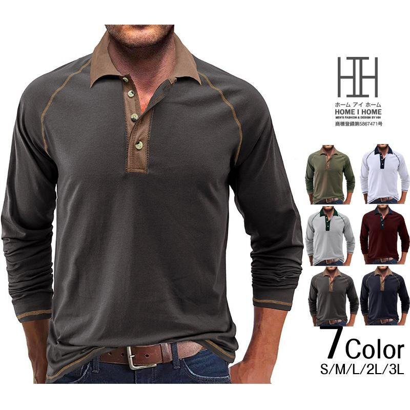 長袖ポロシャツ メンズ ラグランスリーブ ゆったり アメカジ トップス 春 秋 冬 おしゃれ ミリタリー 切り替えデザイン お兄系