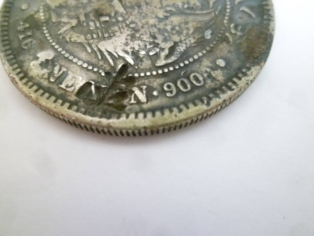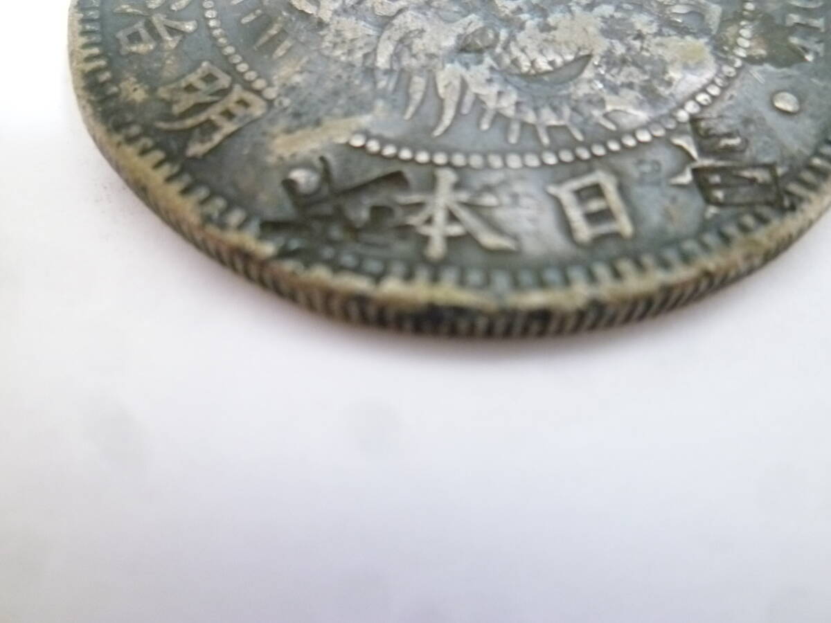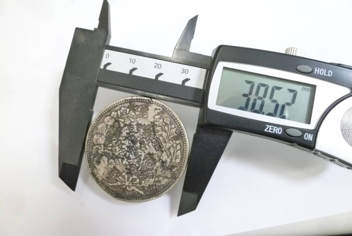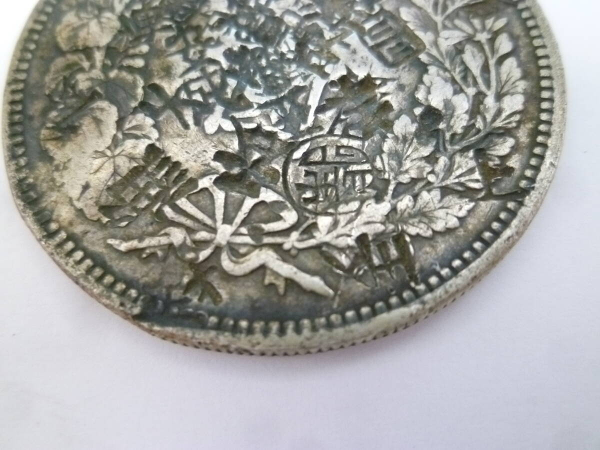 | #42222 【コレクター放出品】 新1円銀貨? 一圓銀貨? 明治28年 チョップ打ち 刻印潰れ 詳細不明 約26.8g 比重値 10.21 現状品 | ||