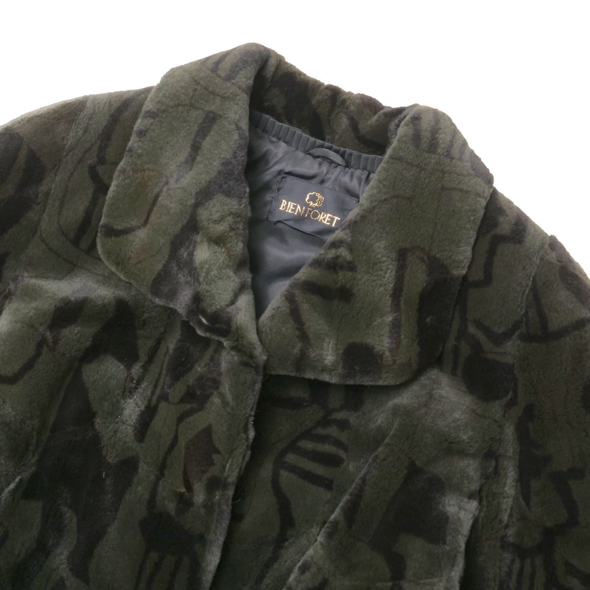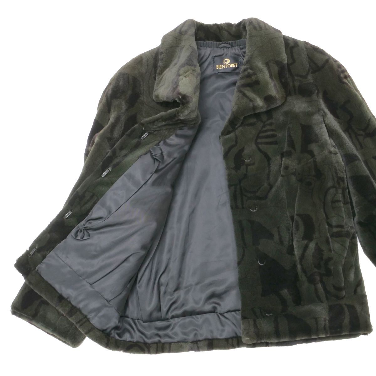 | GS5796◇BIEN FORET 総柄 シェアード ウィーゼル ファージャケット ファーコート ハーフ丈 毛皮コート グリーン×ブラック系 | |||