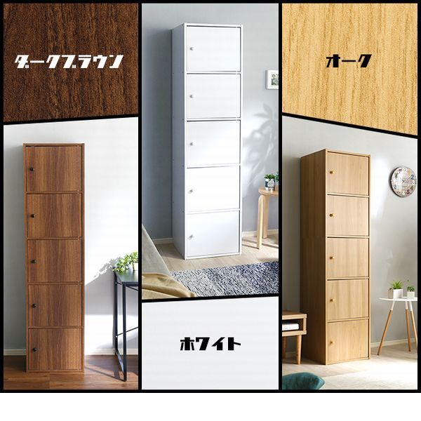 | 【カラー】 オーク、ダークブラウン、ホワイト 【サイズ】 外寸:幅41cm×奥行38.5cm×高さ171.5cm 内寸:幅38cm×奥行35cm×高さ32cm(×5段) 【重量】 (約)34kg 【材質】 構造部分:パーチクルボード、MDF 表面加工:プリント式化粧合板 【梱包】 2梱包でお届けします。 サイズ、重量 2-1:(約)103×40×8cm、(約)17.5kg 2-2:(約)72×40×9cm、(約)13.5kg 【組み立て品】 お客様による組み立てが必要です。 |