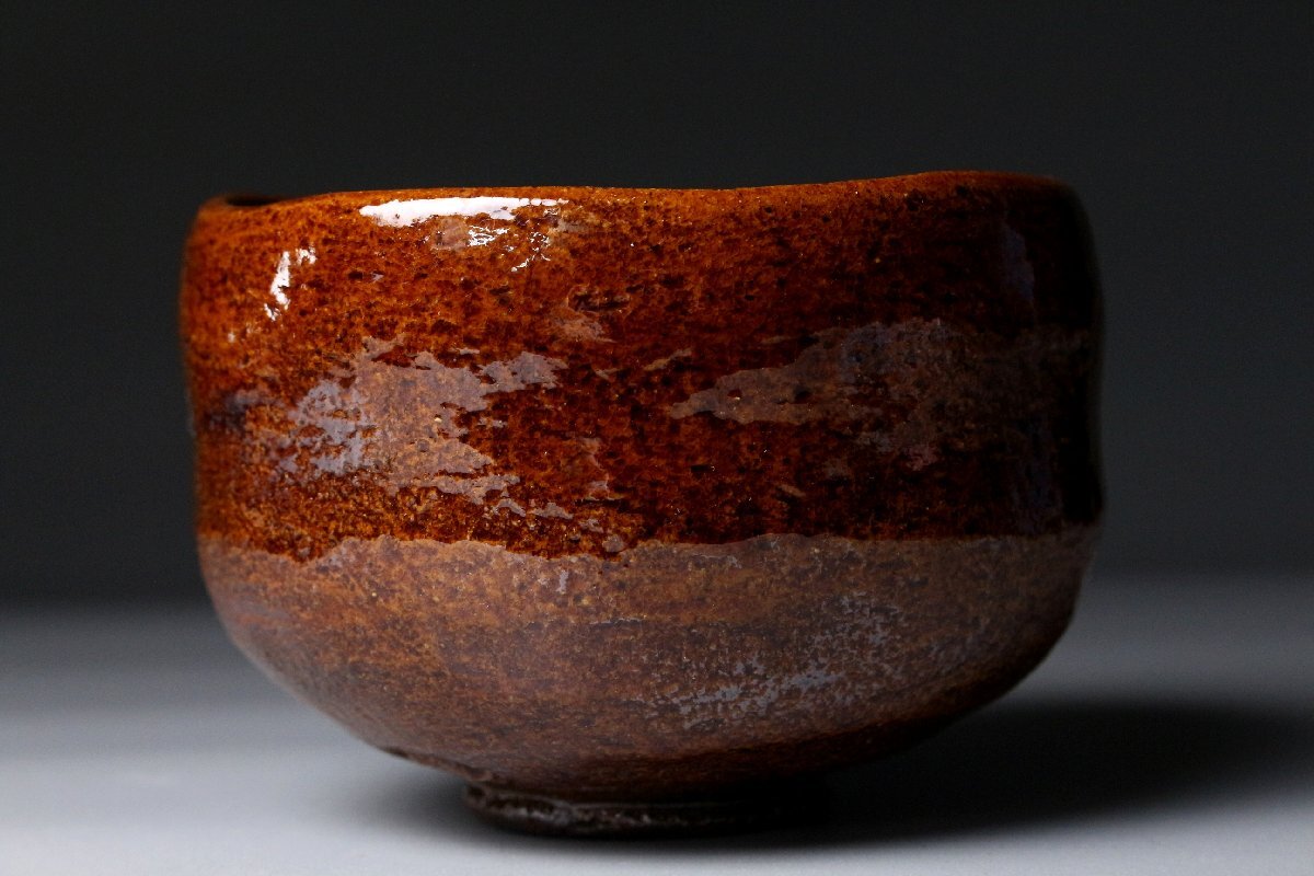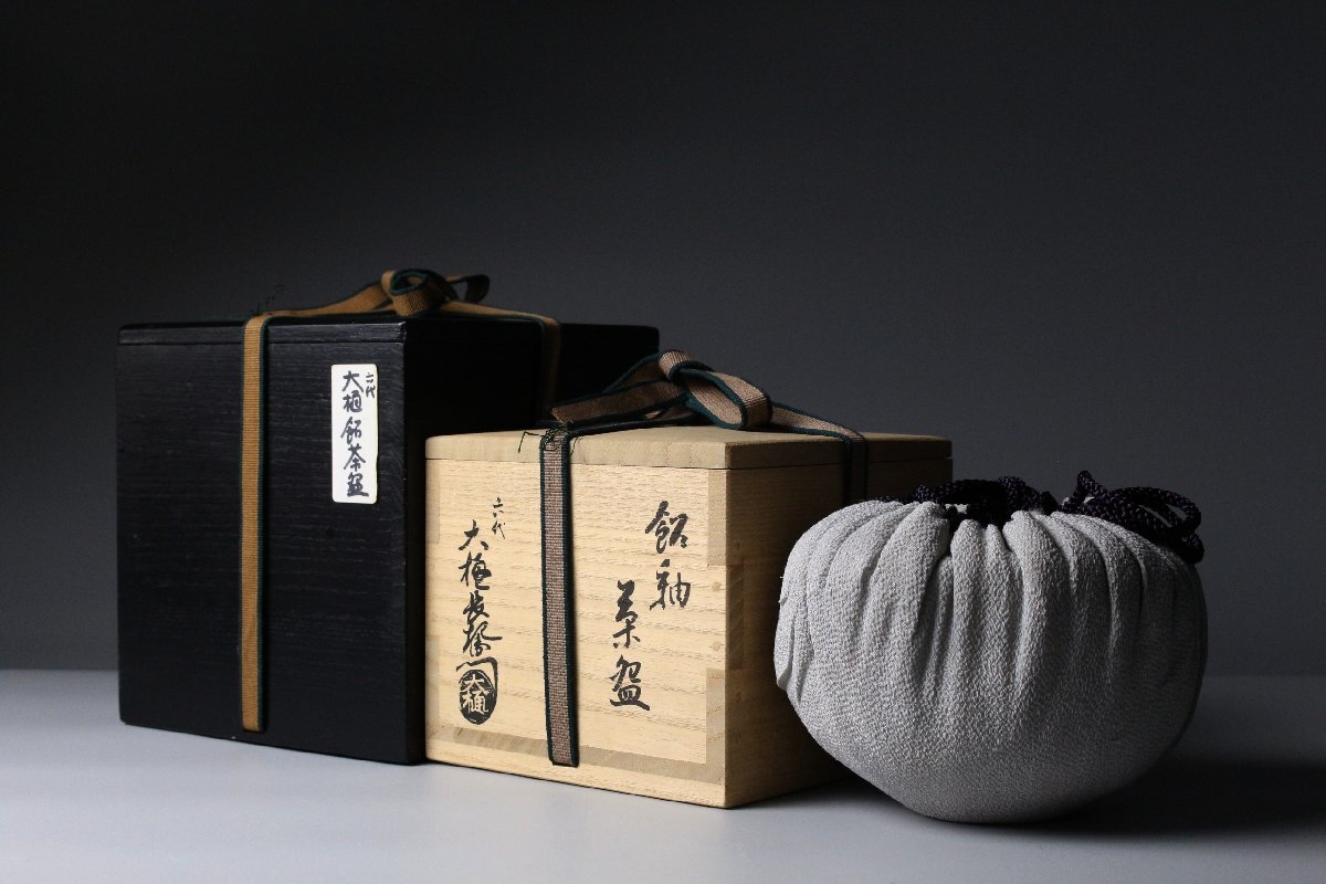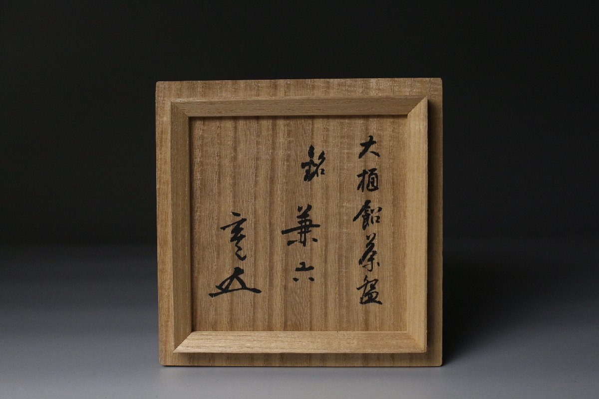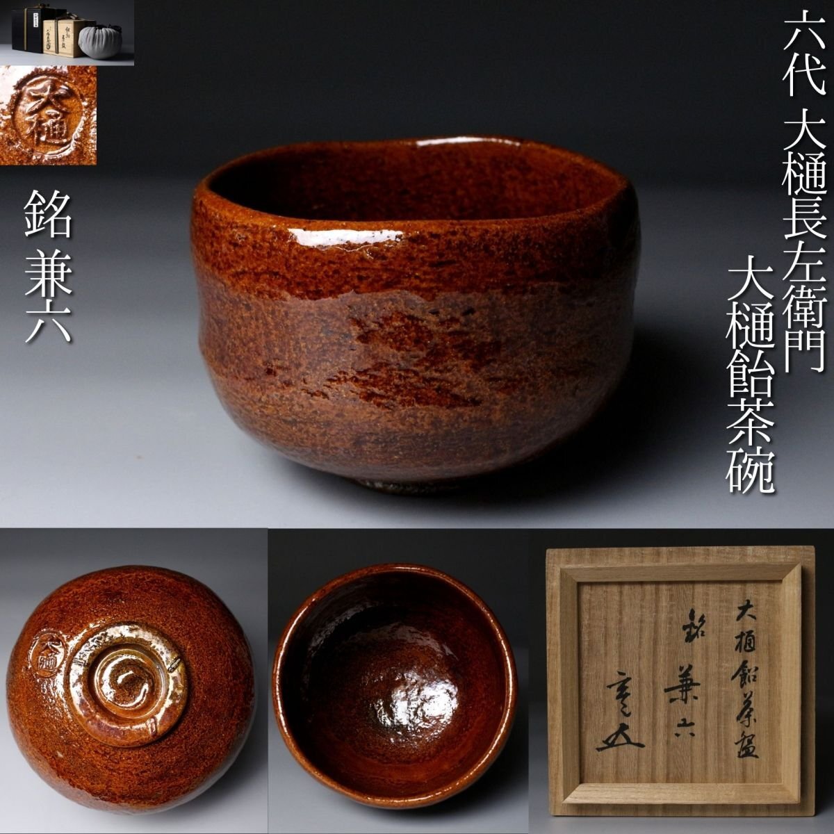 [.WW]25.11 25111706T* * * 商品詳細 * * * ここでしか出逢うことのできない唯一の美をご紹介させて頂きます。 六代 大樋長左衛門による本作「大樋飴茶碗・銘 兼六」は、大樋焼の真骨頂ともいえる、深い飴釉の景色と端正な造形が見事に響き合う一碗です。 さらに、裏千家十一代 玄々斎宗匠の書付、そして二重箱という格式高い付属が備わった、茶道具として大変価値ある逸品です。 大樋飴特有のとろみある飴釉は、光を受けると奥から柔らかな輝きを湛え、しっとりとした艶を見せます。釉の溜まりや流れが自然に生み出す濃淡は、まさに手仕事の美しさそのもの。長左衛門の確かな轆轤と成形の力が、茶碗のふくらみ、腰の張り、口縁の柔らかな気配として表れています。 「兼六」という銘が示すように、穏やかさと品格が調和した佇まいは、ひとつの理想形を思わせる美しさ。手に取ると驚くほど馴染みが良く、茶を点てる際の安心感と充実感をしっかりと味わえる茶碗です。 玄々斎書付という揺るぎない由緒に加え、時代を経た大樋飴の深い風情が見事に調和した本作は、鑑賞茶碗としても、実際の茶席においても活躍する、まさに堂々たる優品といえます。 ■商品内容/ 茶碗、仕服、書付箱(二重箱) ■サイズ/横12.5㎝×高8㎝ 内箱:四方14.5㎝×高12㎝ 外箱:四方16.5㎝×高16.5㎝ ■状態/ 僅かなスレ、小傷、 箱にスレ、小傷、汚れがございます。 ※写真にてご確認、ご了承の上ご入札下さい。